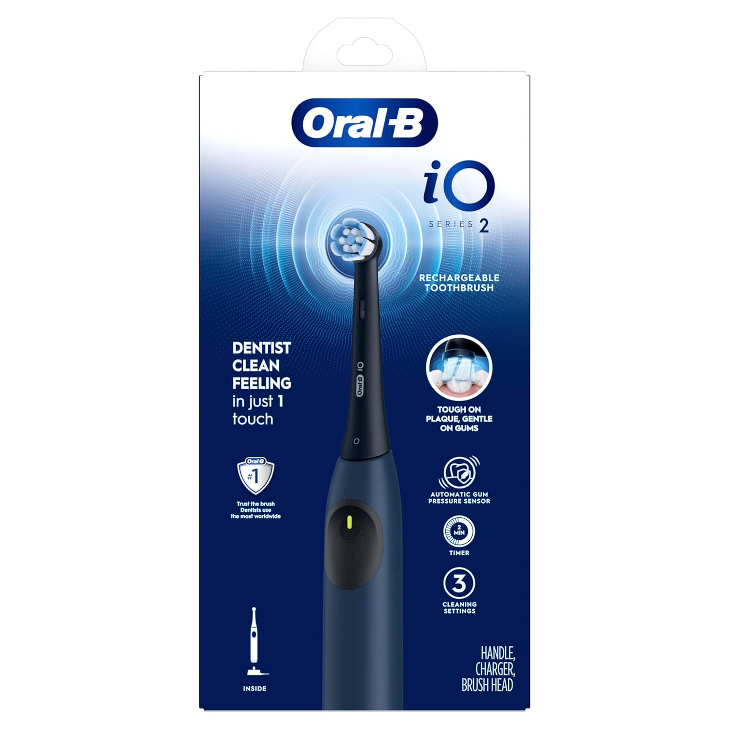 The Oral-B iO Series 2 combines powerful, but gentle micro vibrations with Oral-B's dentist inspired round brush head to deliver 100% cleaner teeth versus a regular manual toothbrush. So advanced yet so simple, that you will be able to achieve that dentist clean feeling in just 1 touch of a button.