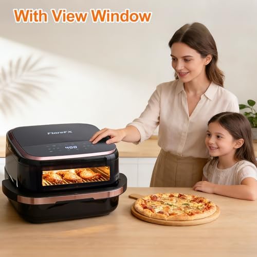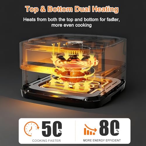 ???? ???? ?? ???? ??? ?????? ??? ?? ??? ? ?????? This 4.5QT air fryer oven features a large flat basket with an inner size of 11.2" × 11.2" and 2.28" deep. It fits up to an 11" pizza, with 2 pizza mode "Frozen Pizza" & "Fresh Pizza". ???? ???? ??? ????? ???? ?????? ??? ?????? ????????? Yes. The dual heating air fryer uses top and bottom heating elements with 360° hot air circulation for faster, more even cooking with less flipping, delivering crispy and golden results. ???? ?? ??? ???? ???? ???? The included rack is perfect for air frying French fries, chicken wings, and snacks, helping improve airflow for even crisping and reducing flipping. For most foods, you can cook directly on the basket without the rack. ??? ? ??? ??? ???? ????? ??’? ???????? Yes. This air fryer with viewing window lets you monitor your food without opening the basket—no more guesswork and no heat loss during cooking. ???? ???? ??? ????? ???? ?????? ??????? ?????????? This air fryer with 11 presets includes Air Fry, Bake, Roast, Grill, Pizza, and Dehydrate functions. The one-touch presets make it easy to cook frozen food, snacks, meat, and more with perfect results. ?? ???? ??? ????? ???? ??? ???? ?? ??????? The double-handle air fryer basket provides better balance and stability, making it easier to lift with both hands, even when cooking large portions of food. ?? ???? ??? ????? ???? ?? ?????? Yes. The nonstick air fryer basket and rack are dishwasher-safe for easy cleaning. The metal interior wipes clean quickly, making this a convenient and easy-to-clean air fryer for everyday use.