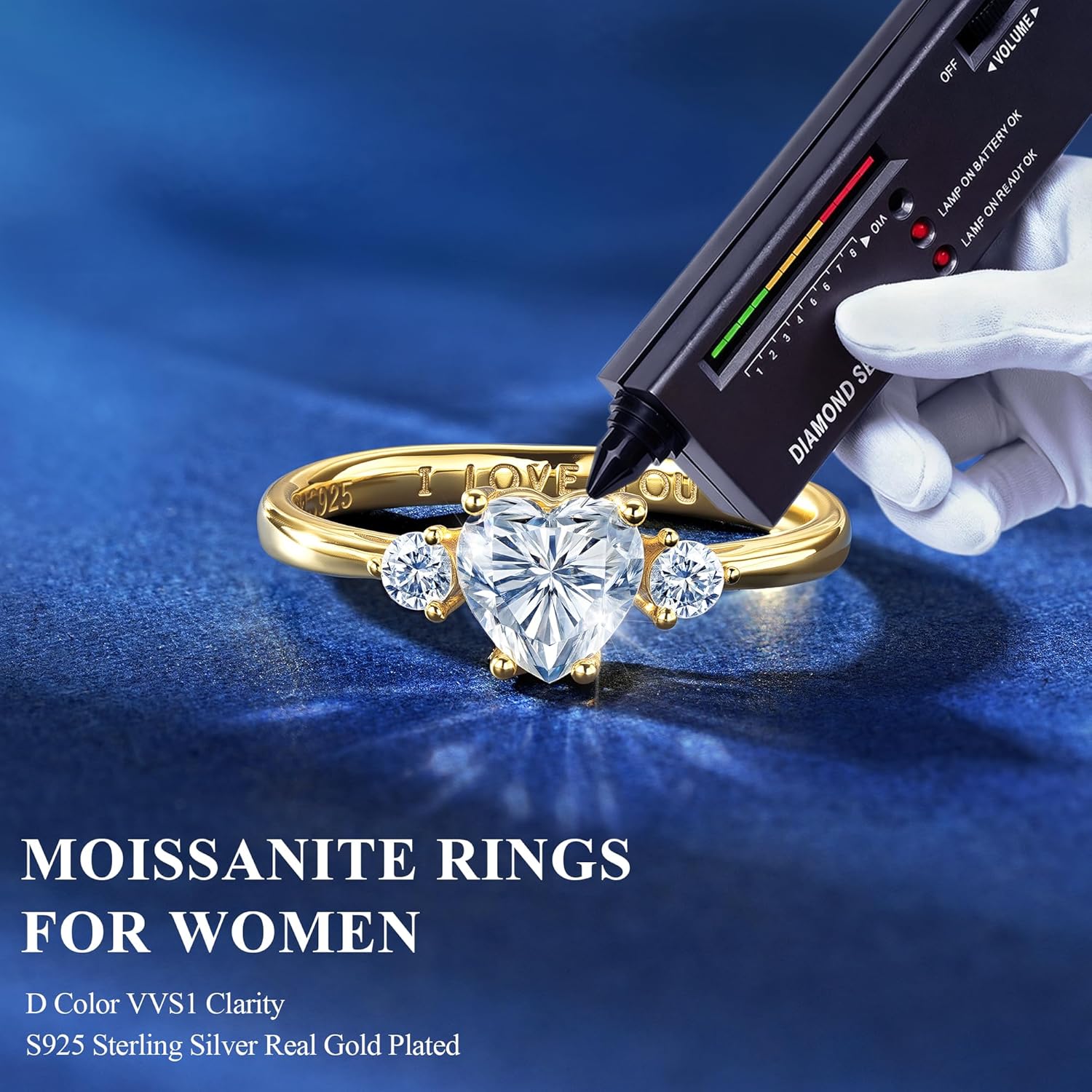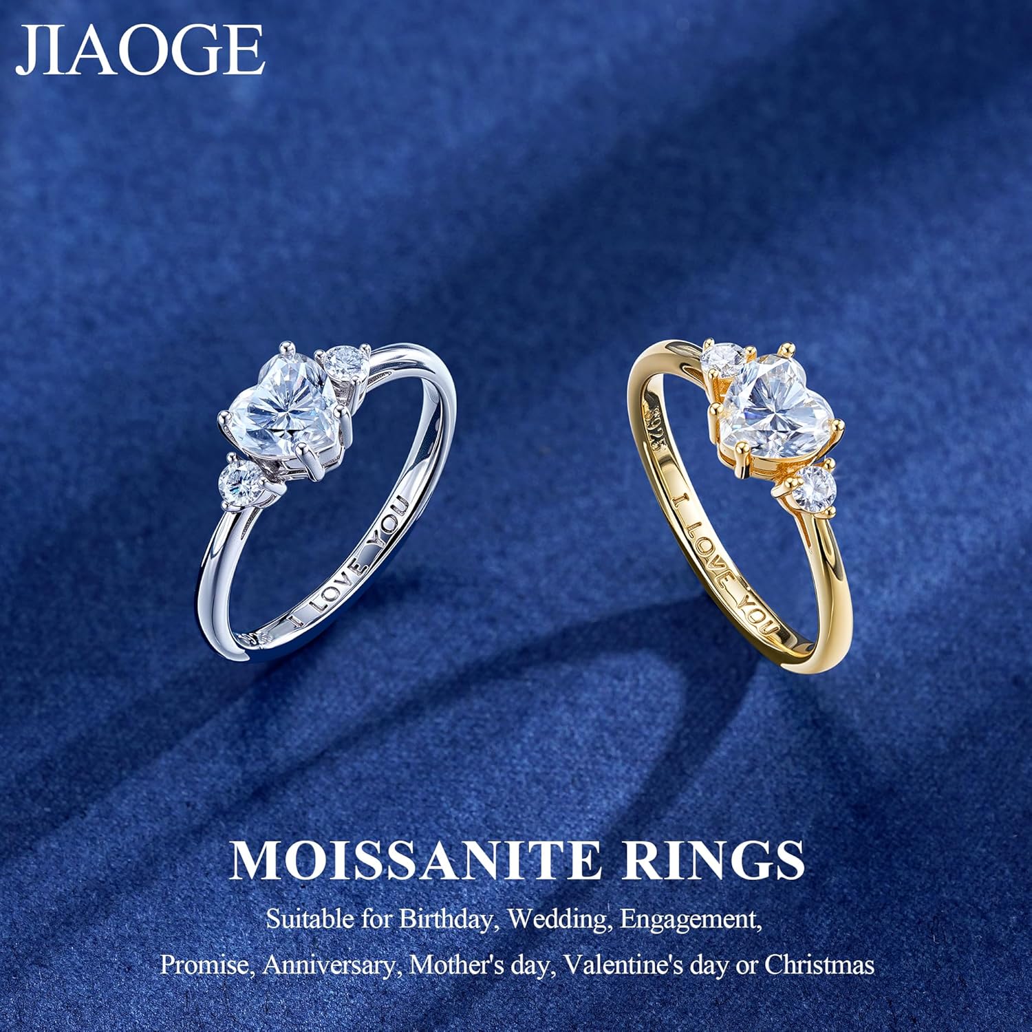 JIAOGE Mothers Day Gifts for Mom - S925 Sterling Silver 1.14ct D Color VVS1 Clarity Lab Created Brilliant Heart Cut Moissanite Rings for Women Wedding Promise Engagement Ring Anniversary Bride Gift