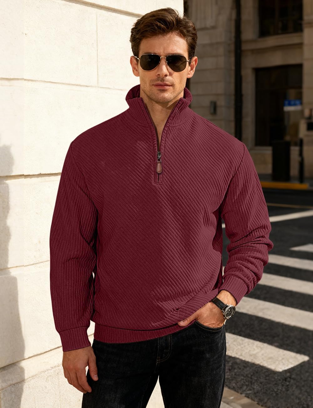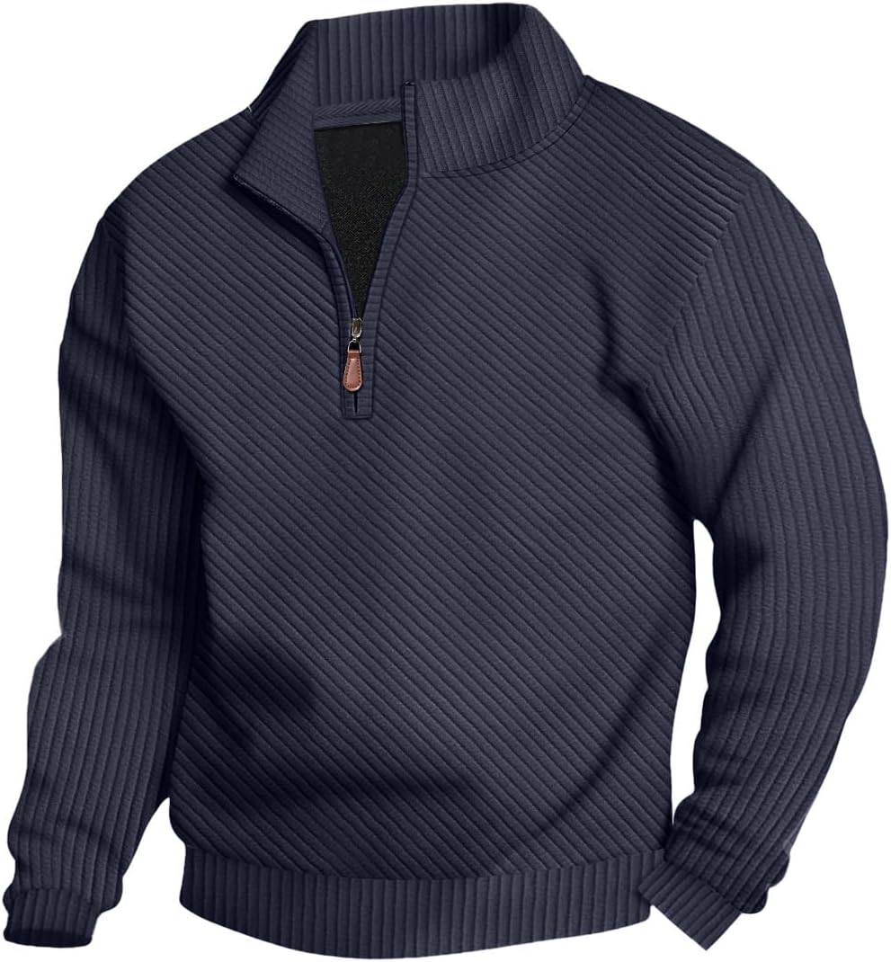 LINENNMAIN Mens Sweaters Pullover Sweater Casual Athletic Long Sleeve Quarter Zipper Stand Collar Sweatshirt