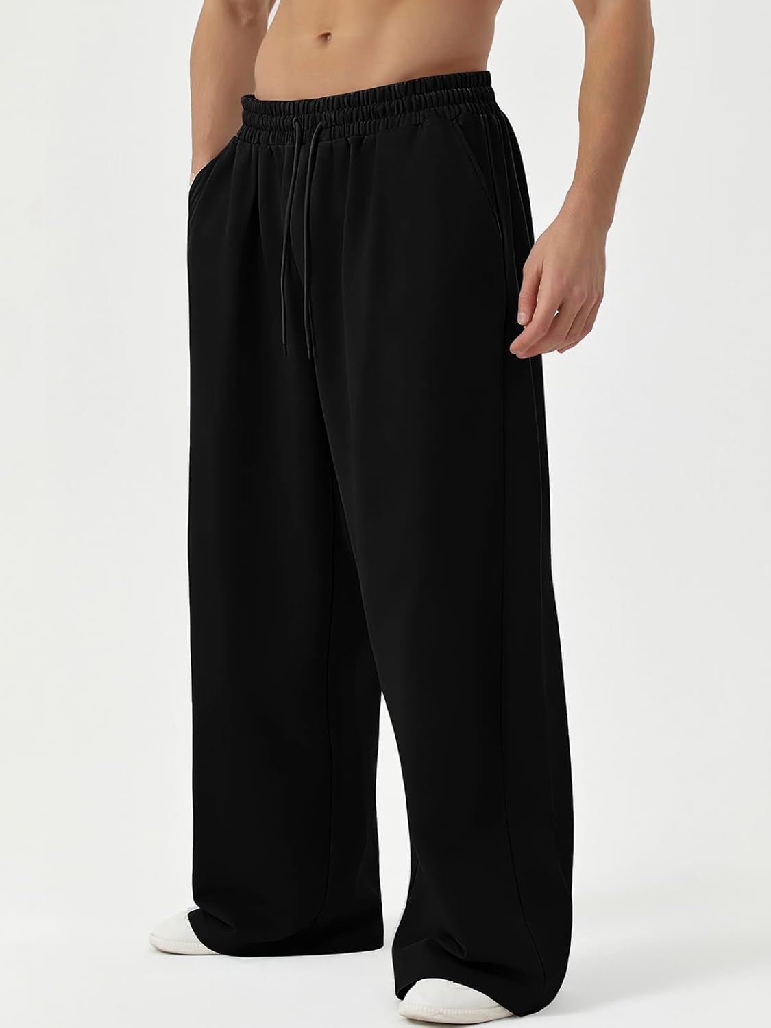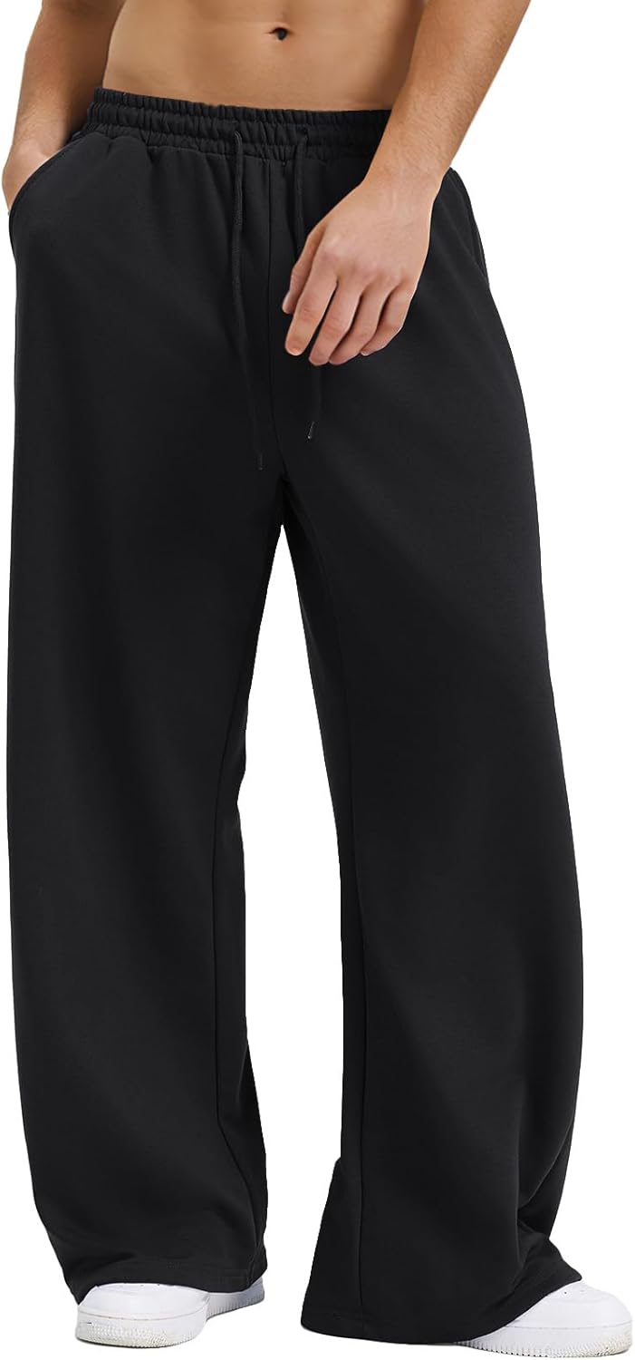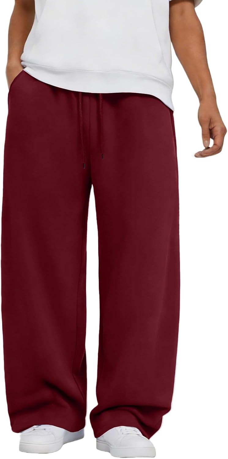 ATOFY Men's Baggy Fleece Sweatpants Wide Leg Elastic Waist Athletic Joggers Loose Lounge Pants with Pockets