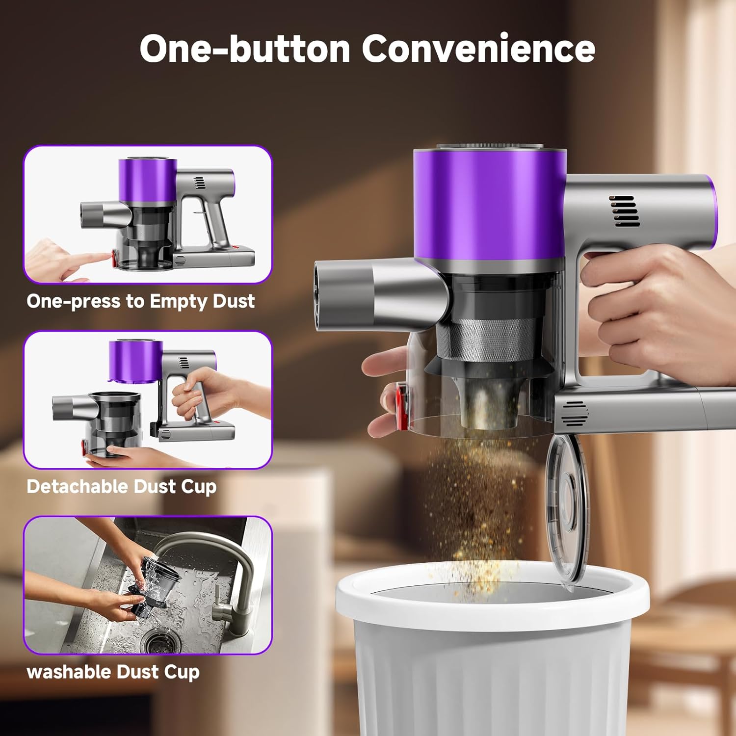 Clinkal Cordless Stick Vacuum Cleaner, 40Kpa Powerful Suction Vacuum Cleaner with LED Headlight, Detachable Battery, 8-in-1 Lightweight Handheld Vacuums for Pet Hair Carpet and Hardwood Floor, Purple