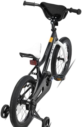 DESIGN FOR KIDS - 1. This Kids bike comes with stable training wheel early rider. 2.Quick release seat simplify the height adjustment. 3.Saddle with holder to learn riding when the training wheel is off. 4.Foot brake suitable for young rider don't have enough power to manipulate the hand brake. MINIMUM MAINTENANCE - Made of premium steel to survive the bumps of learning, the durable steel frame is backed by our limited lifetime warranty. The bike comes with black tire & single speed, only little maintenance needed due to the simple design. DIY DECAL & SAFE CHAIN GURAD - Your child will get a DIY decal, they could make a unique bike with the decal by sticking their name on the frame or chain guard. The chain guard well protects the chain, it will last longer than other bikes, your child will not get hurt when try to touch the chain. EASY TO INSTALL - The children bike comes with 85% Pre-assembled body and the basic assembly tools, only pump needed for tire, normally takes a novice about 20 minutes to assemble it. If you have problem about assembly or the bike, please contact us. RECOMMENDED SIZE CHART - 12" BIKE FOR 2-4 YEARS (33"-41") TODDLER, 14" bike for 3-5 years (35" - 47") child, 16" bike for 4-7 years (41" - 53") boys & girls, 18" bike for 5-9 years (43"-59") boys & girls. Note: child height may vary even at the same age, please take the height into consideration.