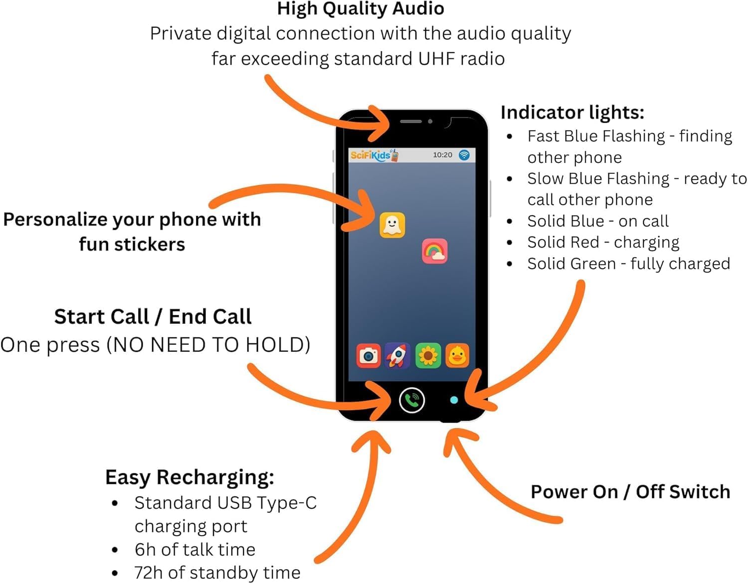 Kids Walkie Talkie Phones (2 Pack) \u2013 Rechargeable Two-Way Toy Voice Phones with One-Press Call, Customize with Fun Stickers, Clear Digital 2.4GHz Audio, Indoor & Backyard Play for Boys &