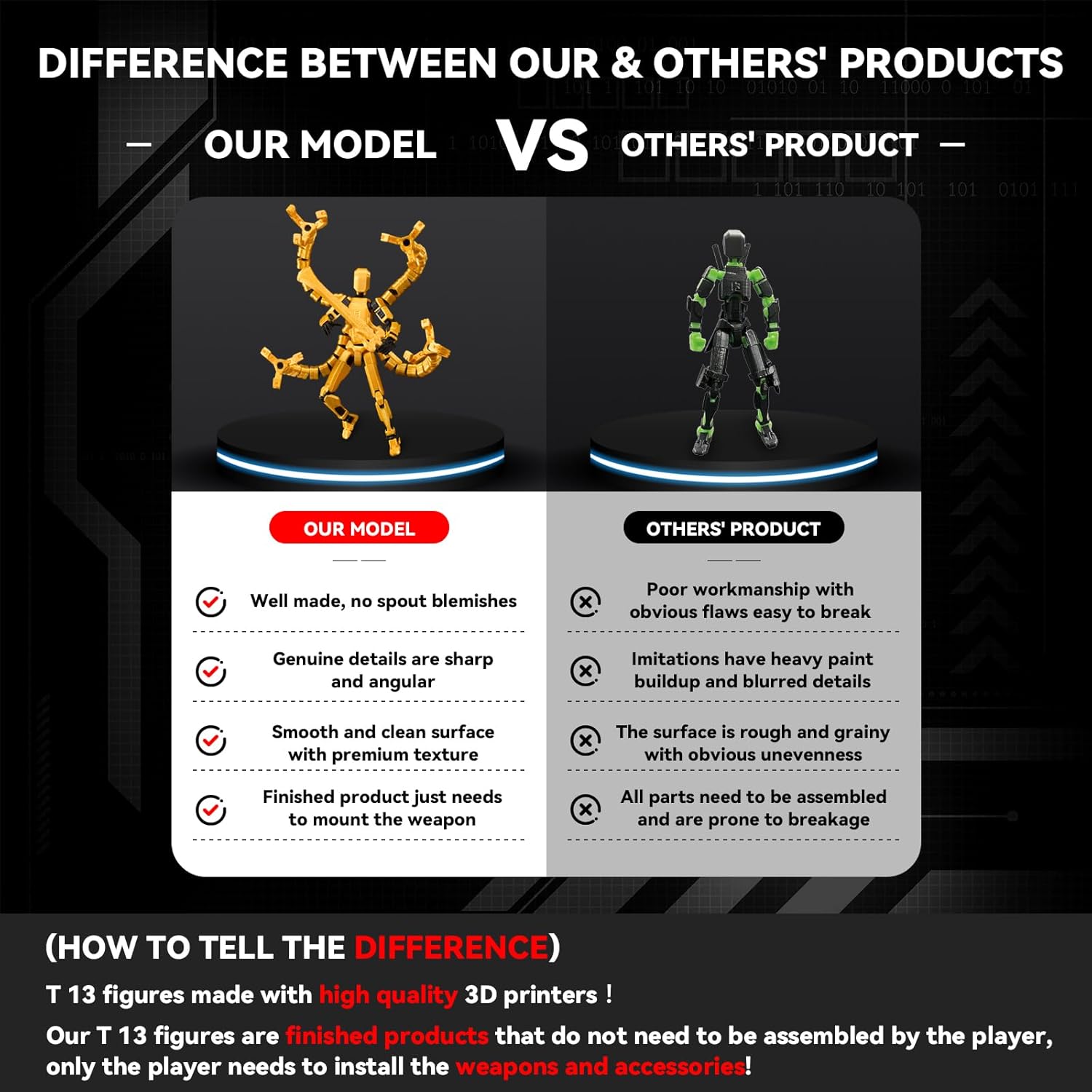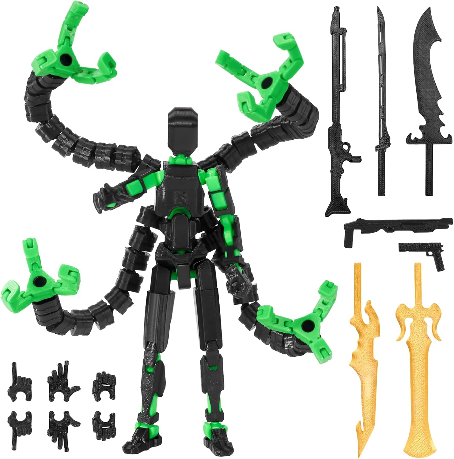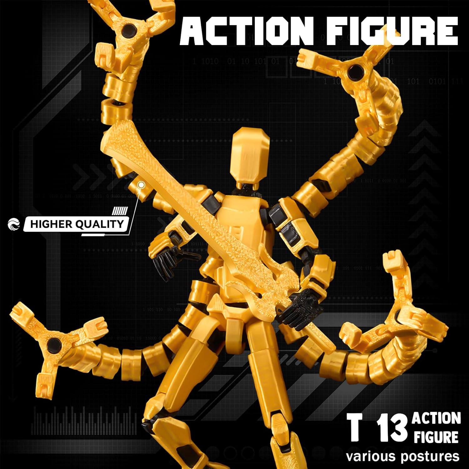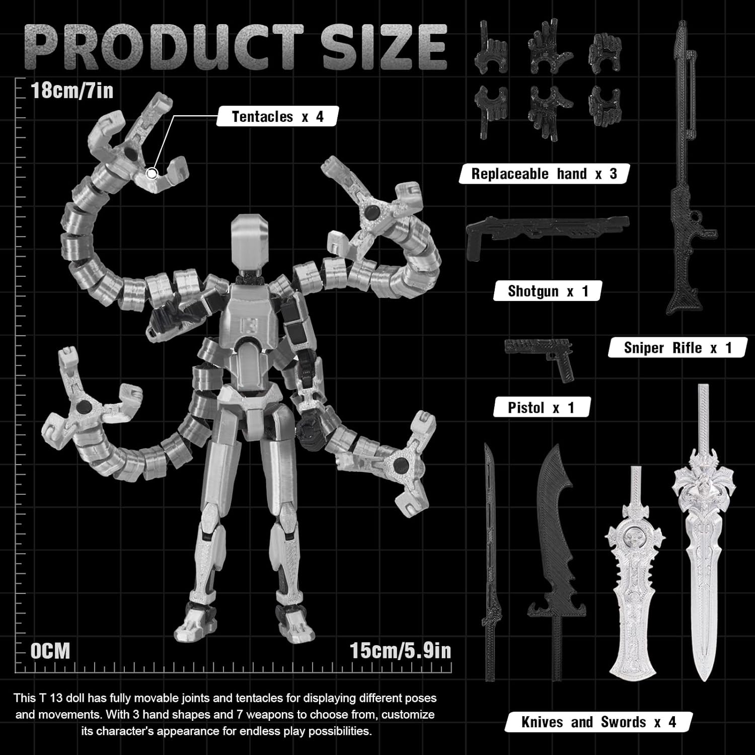 T13 Figure Set & Titan 13 Toys(3d Printed Action Figures Assembly Completed)(Multi-Jointed Movable)(Octopus Man Designs Includes Various Accessories)Dummy T 13 Figures Desk Decoration (Silvery)