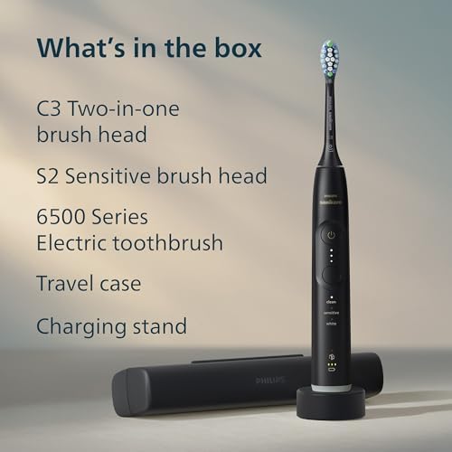 Philips Sonicare 6500 Series Electric Toothbrush - Next-Generation Sonicare Technology, Pressure Sensor, 9 Brushing Settings, SmarTimer, BrushPacer, 21-Day Runtime, Travel Case, Black, HX7411/08
