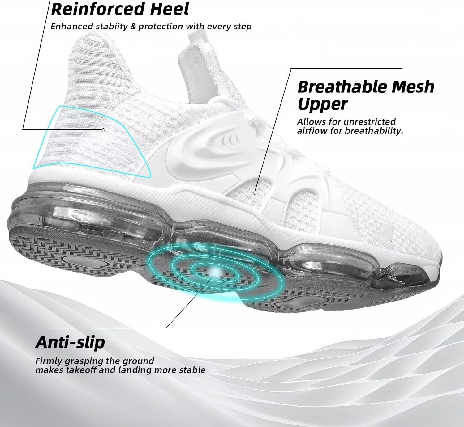 • Visible Air unit absorb impact.Air cushion sole makes for extra comfort and cushioning with every step.