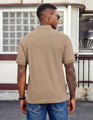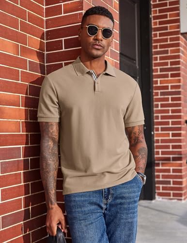 PREMIUM FABRICS: Men's polo shirt is made of cotton pique fabric,soft, lightweight, and breathable. This cotton polo shirt will bring you a more relaxed and comfortable wearing experience. STYLISH DESIGNS: Men's short sleeve polo shirts feature a classic polo collar with two buttons placket, ribbed collar and cuffs won't deform easily. The patchwork weaving design on the front placket and hem slit for added style. CLASSIC POLO SHIRT: Mens casual polo shirt is versatile and perfect for any occasion. Pair it with shorts, jeans, or sweatpants for a relaxed style, or dress it up with trousers or wear it under a jacket or blazer for a smart casual look. OCCASIONS: Mens polo t shirt is a great choice for various occasions, such as daily wear, business, office work, meeting, wedding, party, dating, travel, streetwear, golf, and so on. Men's collared shirts are also an ideal gift for yourself, family, Dad, husband, Son, friends and lovers on Father's Day, Birthday, Valentine's Day and other holidays. WARM TIP: This men's polos is machine washable. Please check the size chart in the product description before ordering to ensure the best fit.