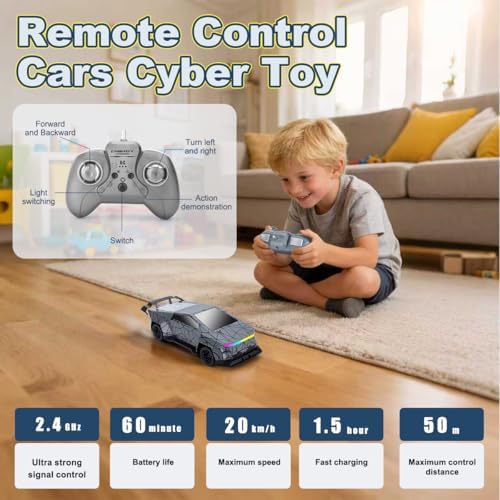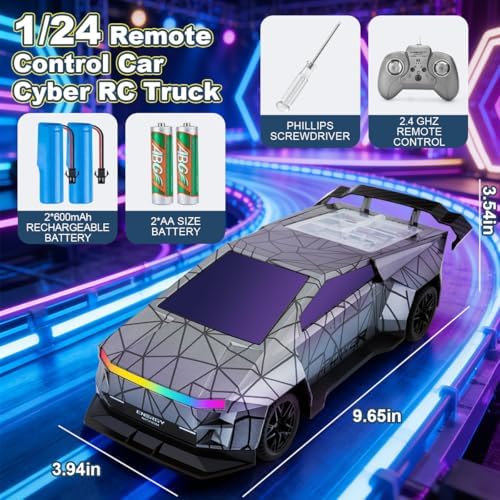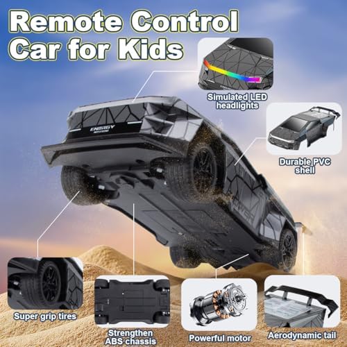 Remote Control Car,All Terrain 2.4GHz RC Truck for 3-12 Year Old Boys, Electric Vehicle RC Car with LED Lights for Kids, Birthday Gifts for Kids (Gray)
