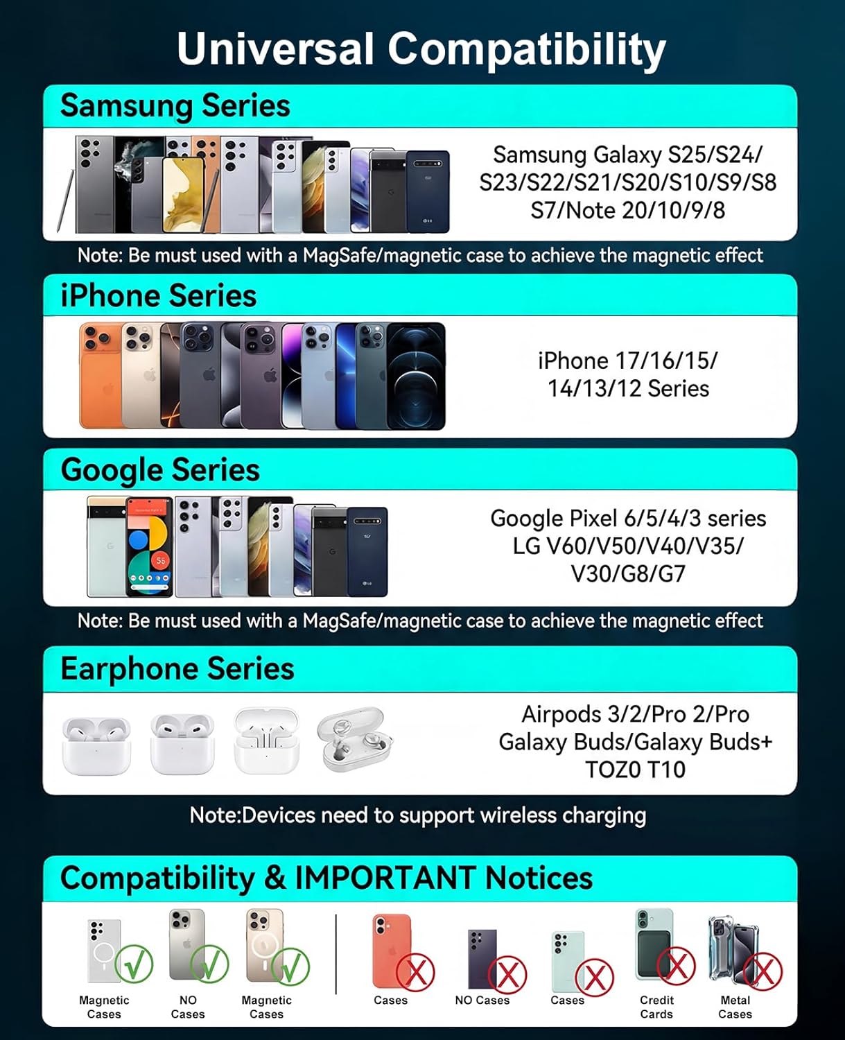 Wireless Charger 2Pack 6FT Samsung Magnetic Wireless Charger Fast Charging Pad with USB-C\/A Ports for Samsung Galaxy S26 S25 Ultra\/S24 FE\/S23 Ultra\/S22\/S21\/Z Google Pixel 9-7, Strong Magnet Tech