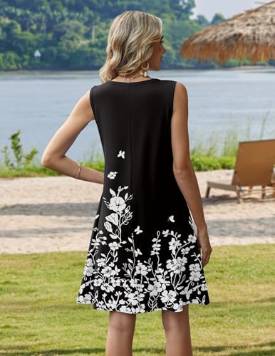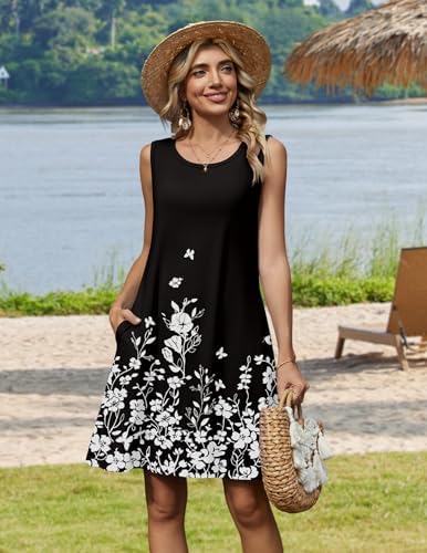 Zeagoo Summer Dresses for Women 2026 Sleeveless Casual Floral Tshirt Sundress with Pockets Loose Tank Beach Dress