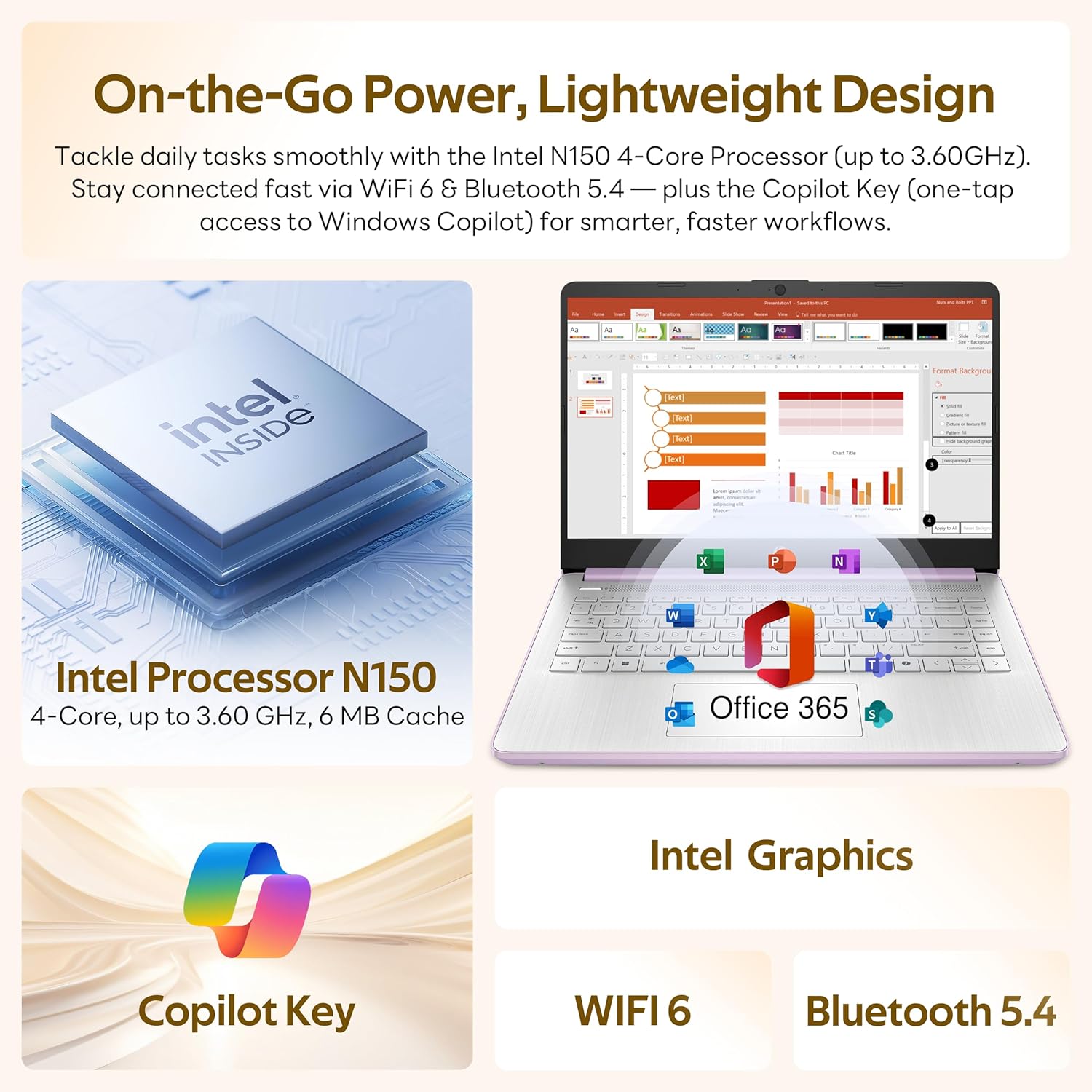 【Intel Processor N150】Enjoy responsive performance for everyday tasks, with efficient power usage designed to keep your workflow smooth and steady.