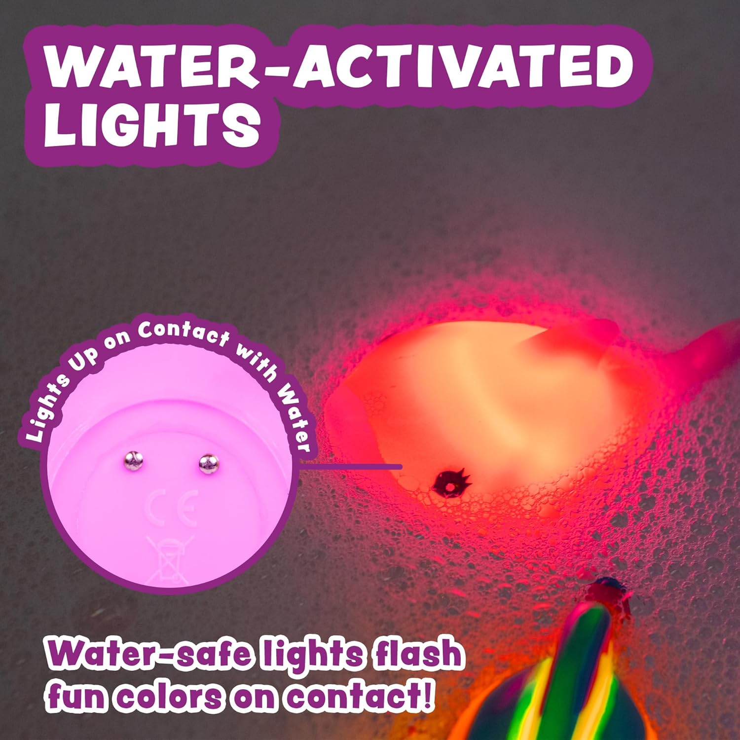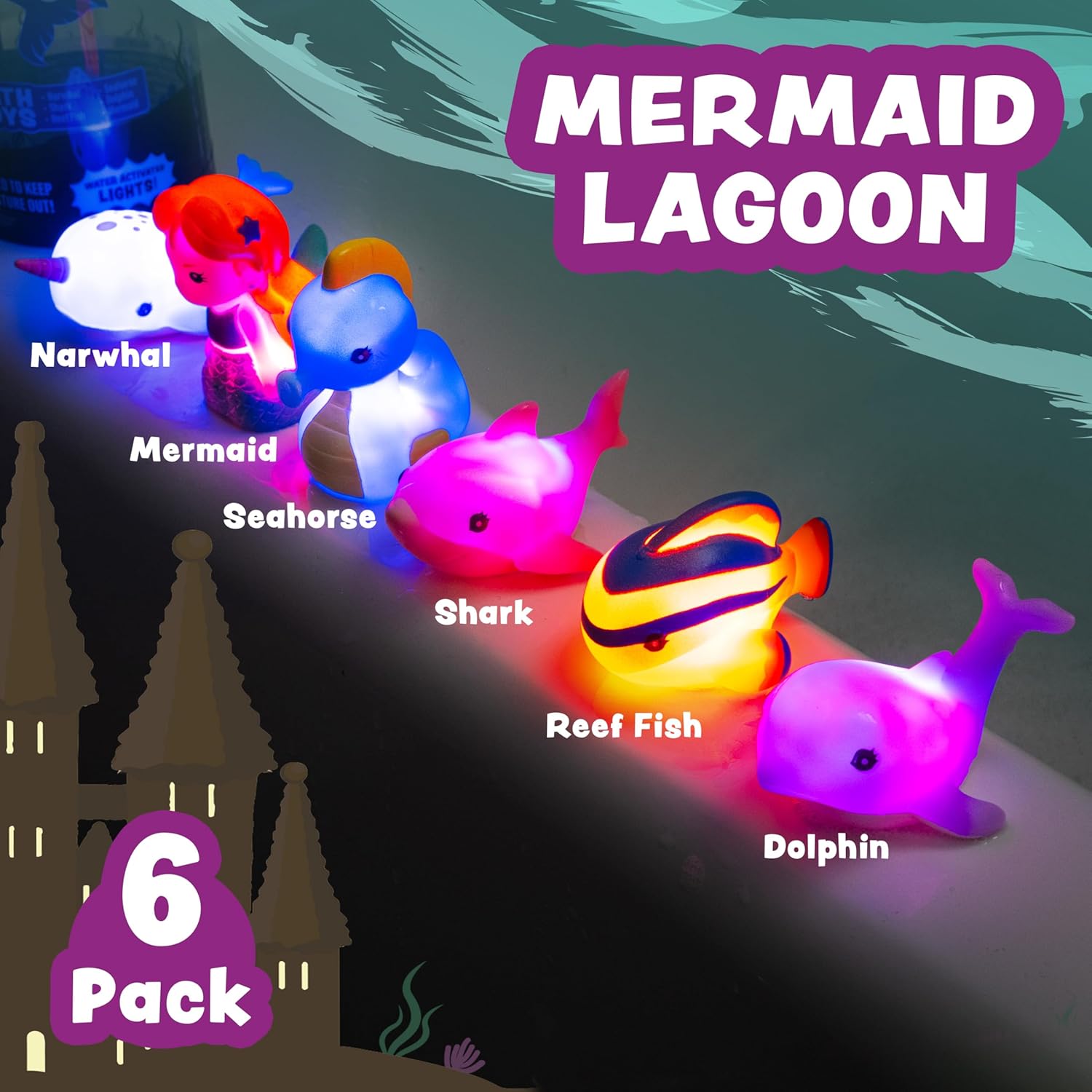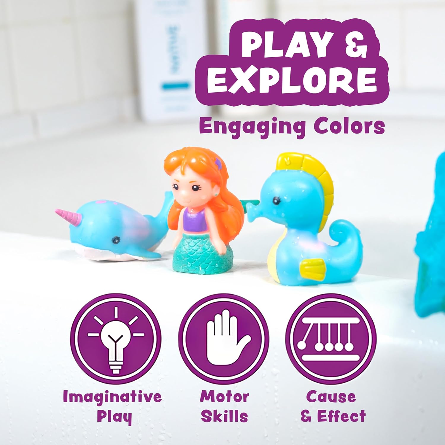 Tub Works® Mermaid Lagoon™ Light Up Bath Toys, 6 Pack | Water-Activated Light Up Toys Flash & Change Color | Easy-Grip Baby Girl & Toddler Bath Toys | Sensory Mermaid Toy Bathtub Toys with Bat