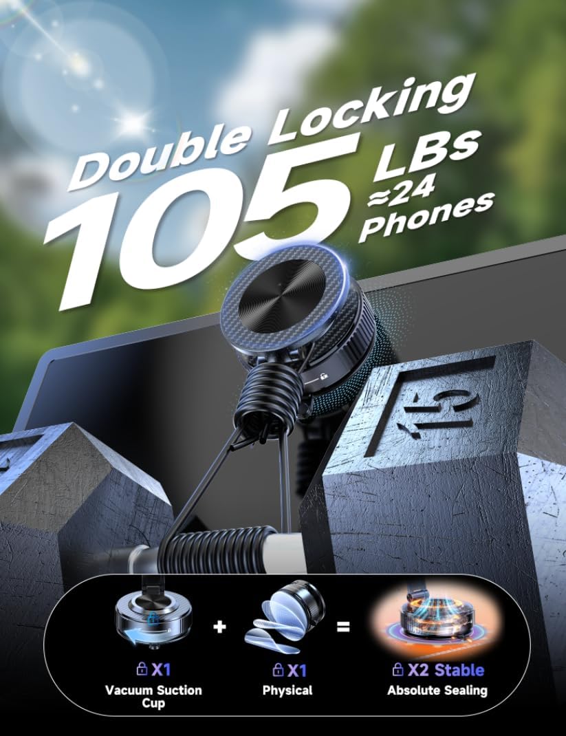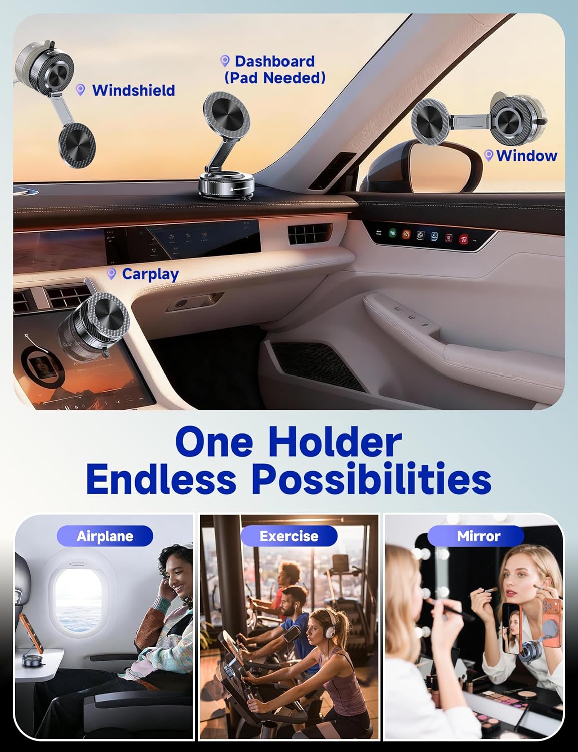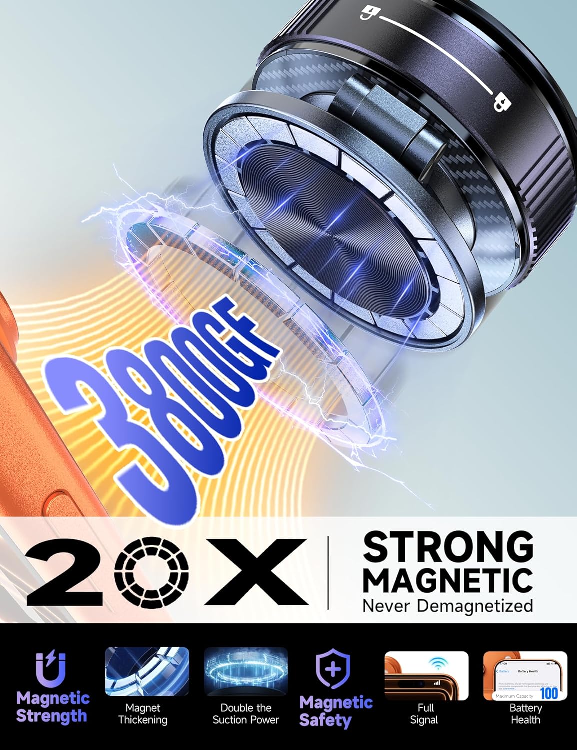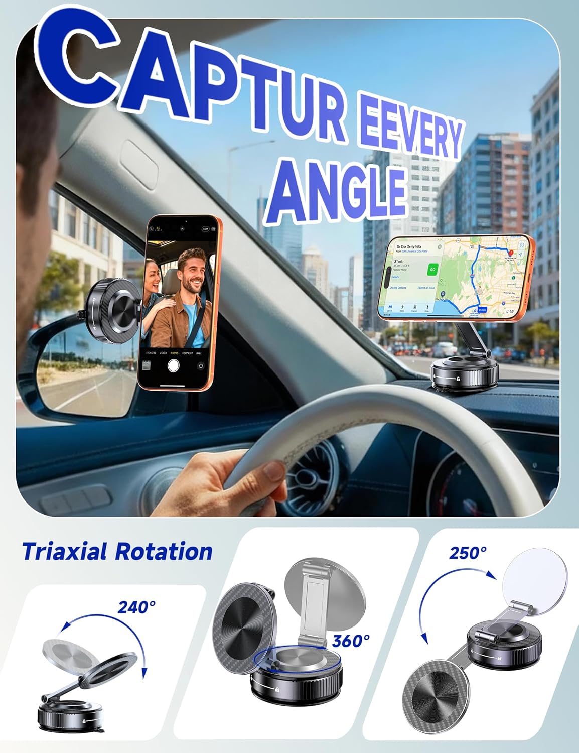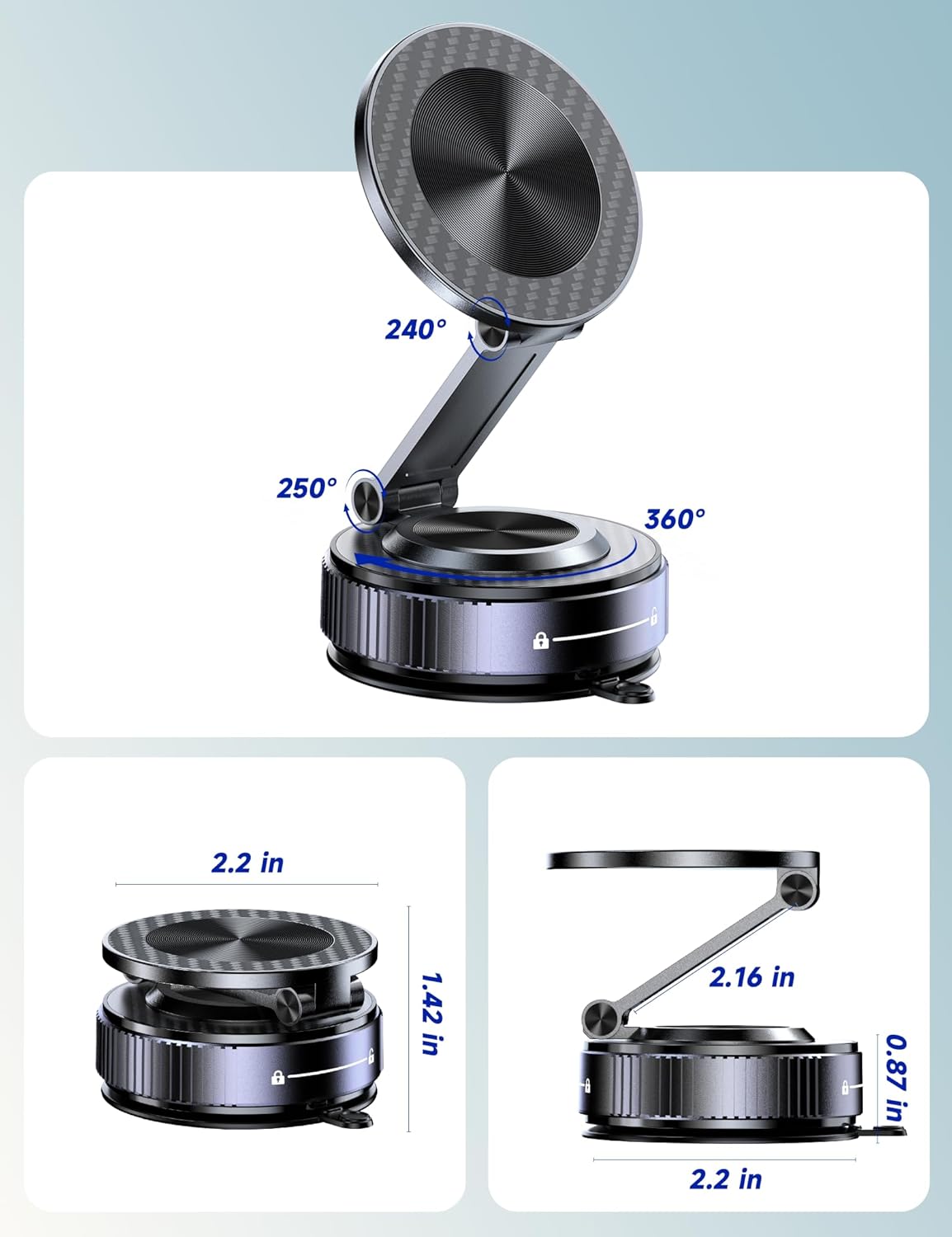 visnfa Vacuum Magnetic Phone Holders for Your Car [105+LBS Suction & 3800gf Magnetic] Magsafe Car Mount, 360° Adjustable Car Phone Holder Mount for Windshield\/Mirror\/Kitchen\/Gym for iPhone &amp