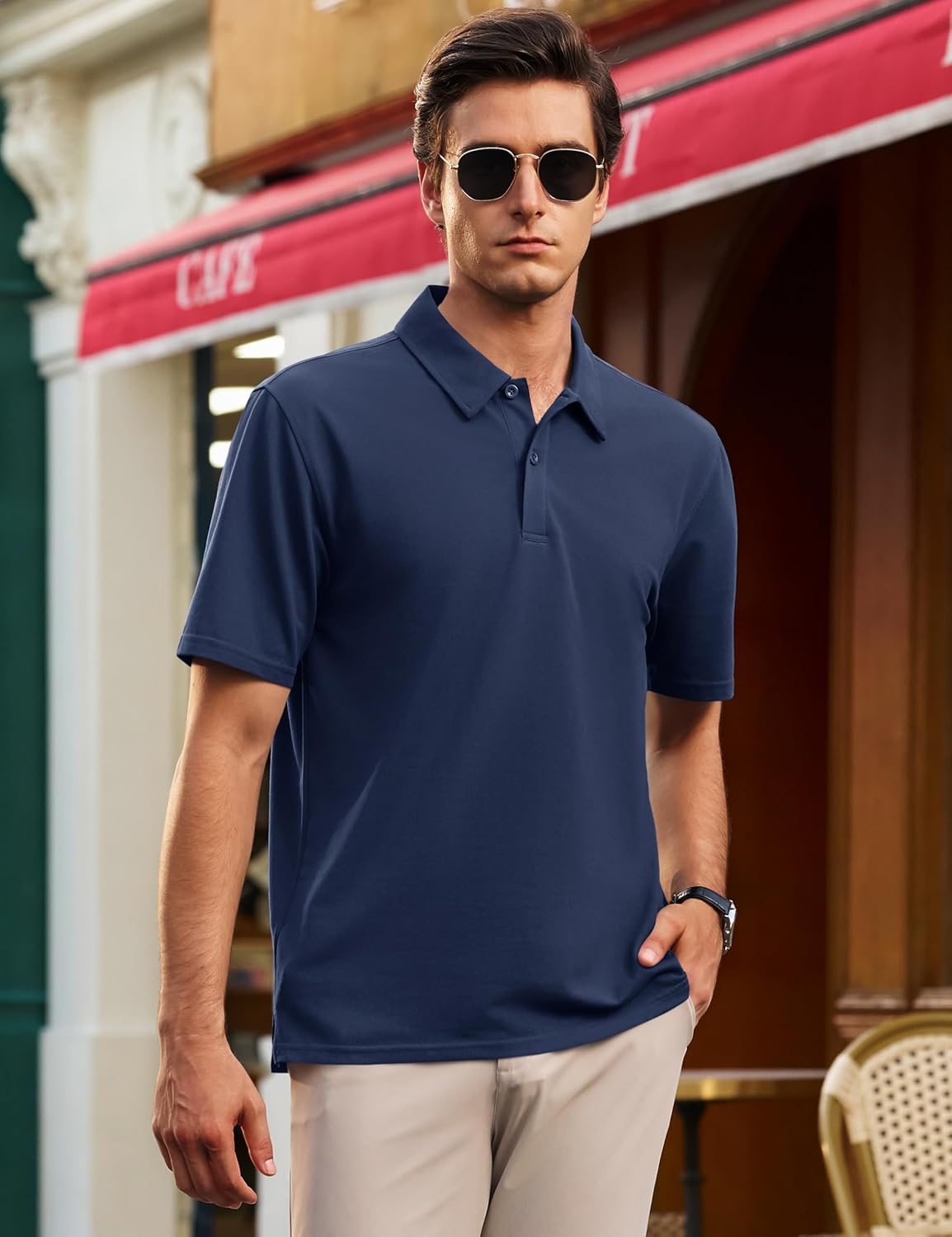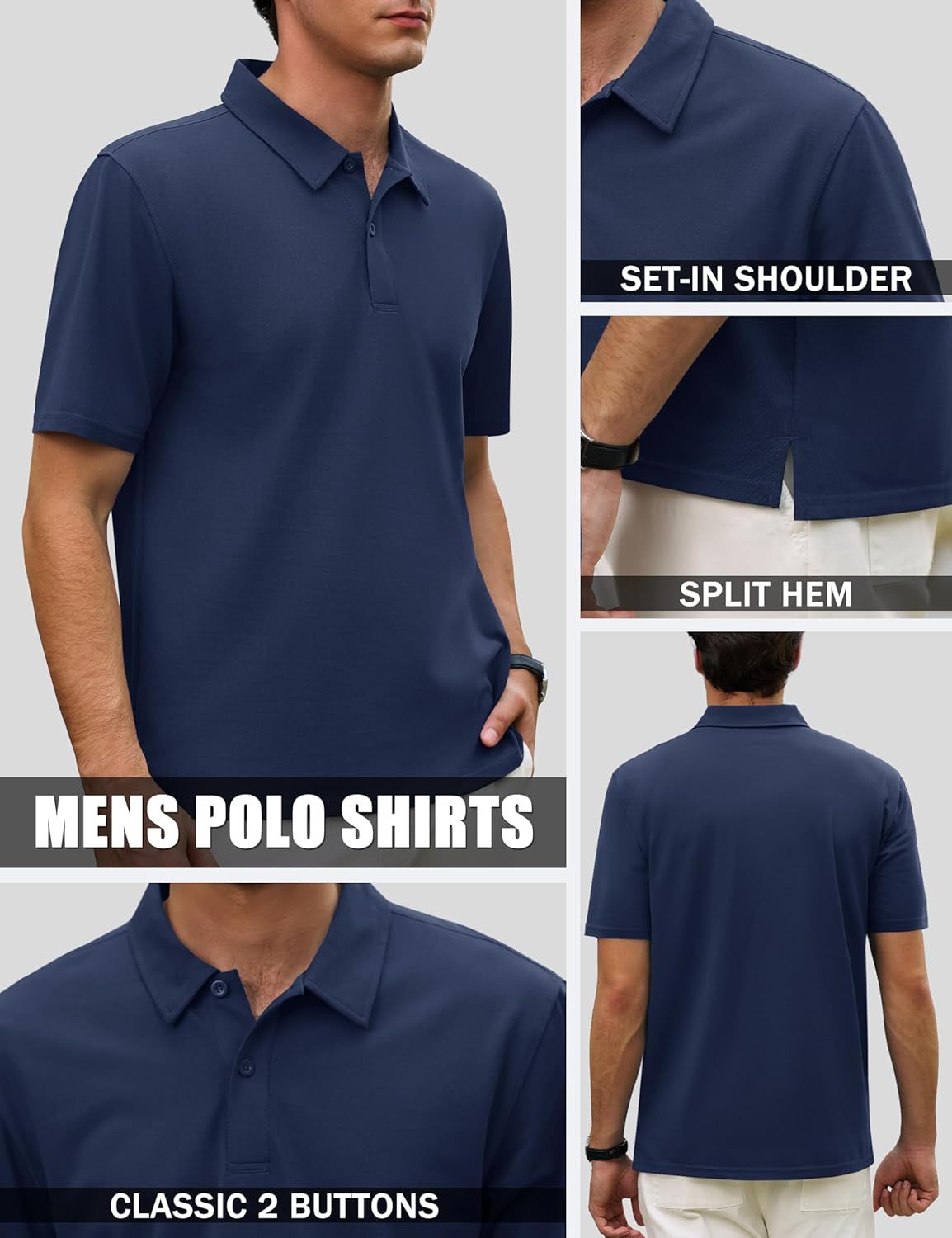 Cotrasen Men's Polo Shirts Short Sleeve 2 Buttons Cotton Collared Golf Shirts Dry Fit Pique Polos for Summer