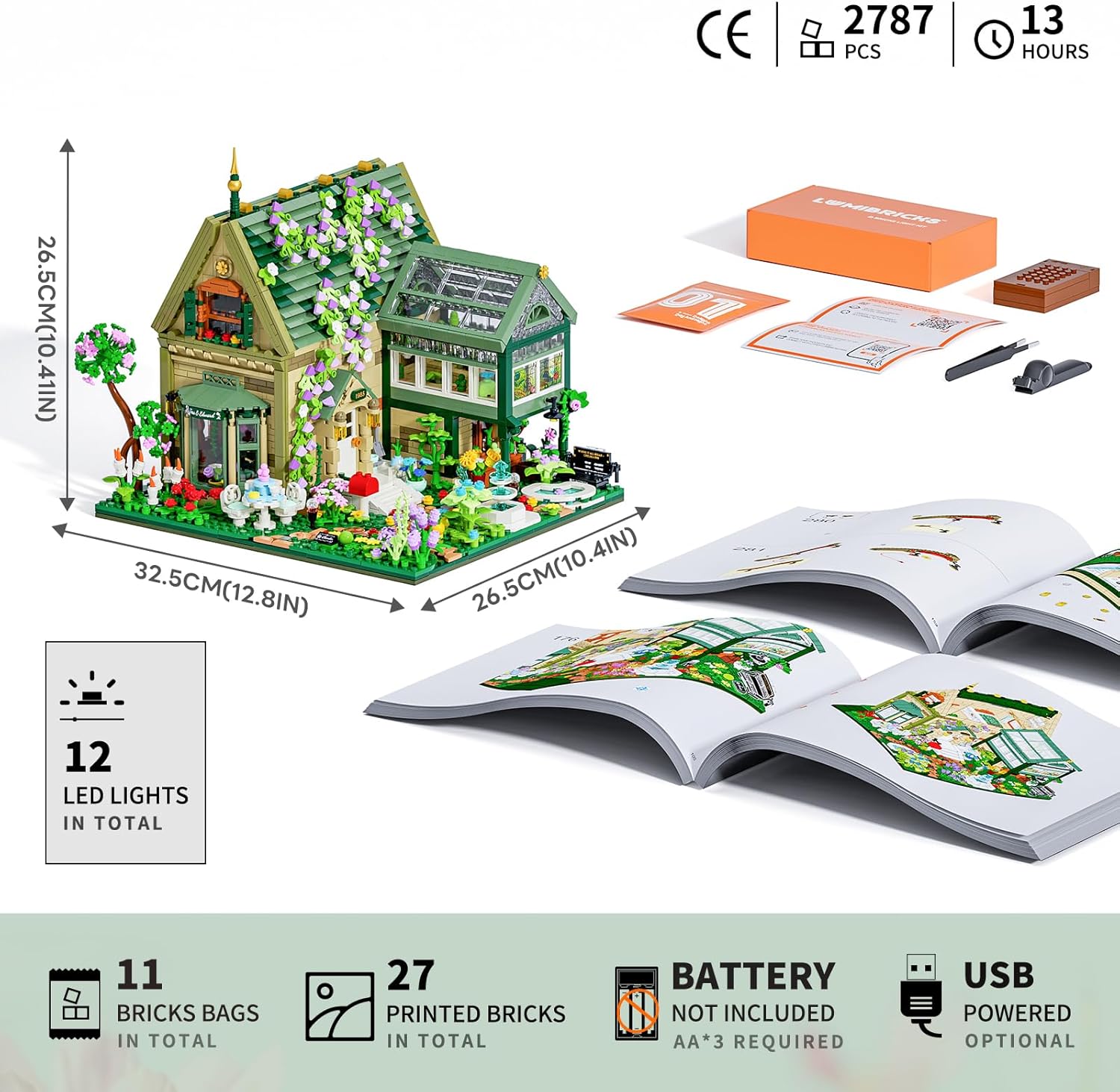 Lumibricks Garden Cottage Lighting Building Bricks Set - 2787 Pcs Retro Garden Cabin House Construction Building Model Set for Adults and Cabin Model Lovers
