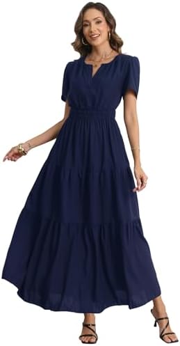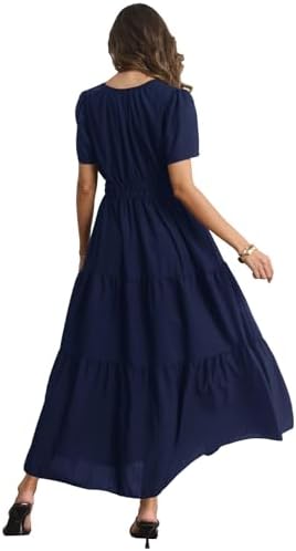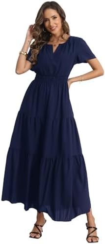 Fabric:Polyester Products Include:One picec dress This is a summer long dress, a dress with pleats, a waist cinching dress, a solid color dress, The fashionable design allows most people to wear it, the small V-neck design gives an elegant and dignified feeling, and the waistband design can perfectly reflect your waistline. This is a rare dress in your wardrobe This is a long dress that can be worn for multiple occasions, whether it's for daily vacation and leisure outings, as a party dress, graduation dress, family gathering dress, wedding guest dress, or as a formal dress for work. It's a great choice. In short, this comfortable and loose fashionable Italian dress can make you shine brightly Please refer to the size chart to choose the appropriate size for placing an order