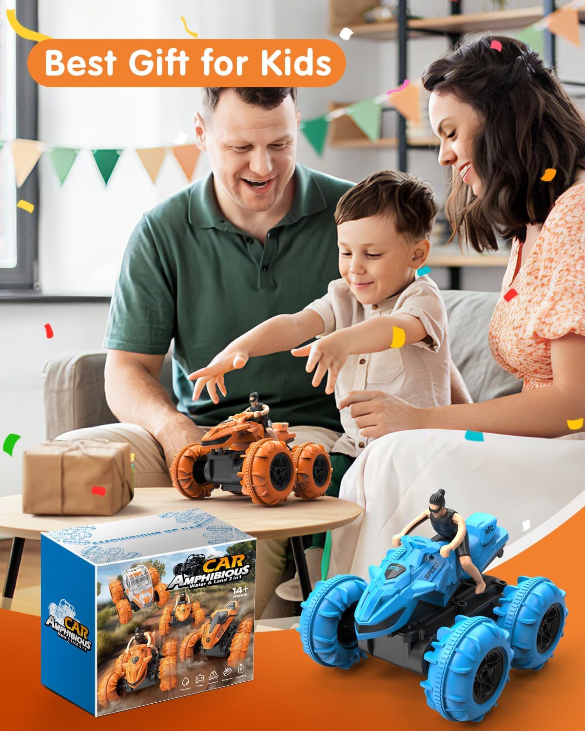 LMRC Remote Control Car, Fast Amphibious RC Cars, All Terrain Off-Road RC Truck, 2.4Ghz Waterproof Cyber Truck Pool Water Toys, Gifts for Birthday Christmas(Orange)