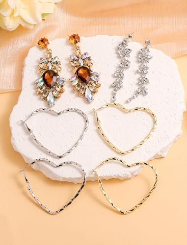 4-Pack Versatile Earring Set: Mix & Match for Every Occasion .This 4-pair earring bundle includes 2 glamorous Cubic Zirconia drop earrings (vibrant orange + multi-tonal accents) and 2 Love Heart hoop earrings (silver & gold-tone). Perfect for daily wear, date nights, weddings, or holiday parties—switch styles to match dresses, blouses, or casual outfits! Never Outdated: Focus on timeless elegance—this 4-piece earring set transcends fleeting trends with classic design. Perfect Gift for Fashion Lovers (Ready-to-Gift Set):Packaged as a 4-piece set, this earring collection is an ideal gift for birthdays, anniversaries, Mother’s Day. It suits diverse style preferences (from bold to minimalist) in one affordable bundle! On-Trend Styles at Unbeatable Value :Get 4 on-trend earring designs (Cubic Zirconia drop + Love Heart hoop earrings) in one set—no need to buy individual pairs! This bundle offers premium style and quality at a budget-friendly price, perfect for updating your jewelry collection or gifting. Mix & Match Ready: Switch between styles in seconds to refresh your look and keep your jewelry collection feeling new.