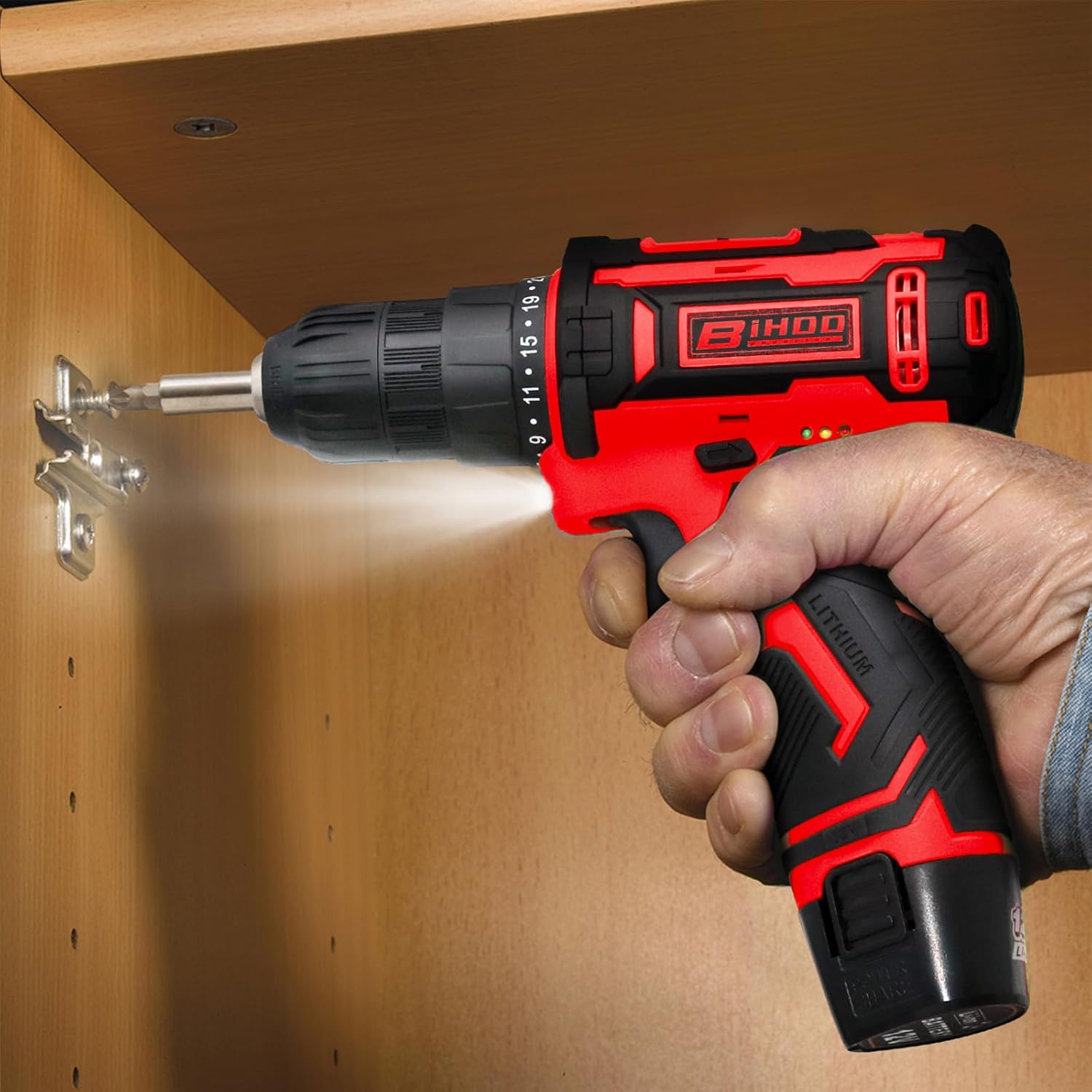 • ? 【Powerful 12V Lithium-Ion Battery & Fast Charging】 Equipped with a high-capacity 1500mAh 12V rechargeable battery and quick charger, this cordless drill provides long-lasting power for continuous home projects. The battery maintains stable output for drilling, driving, and screwing tasks.