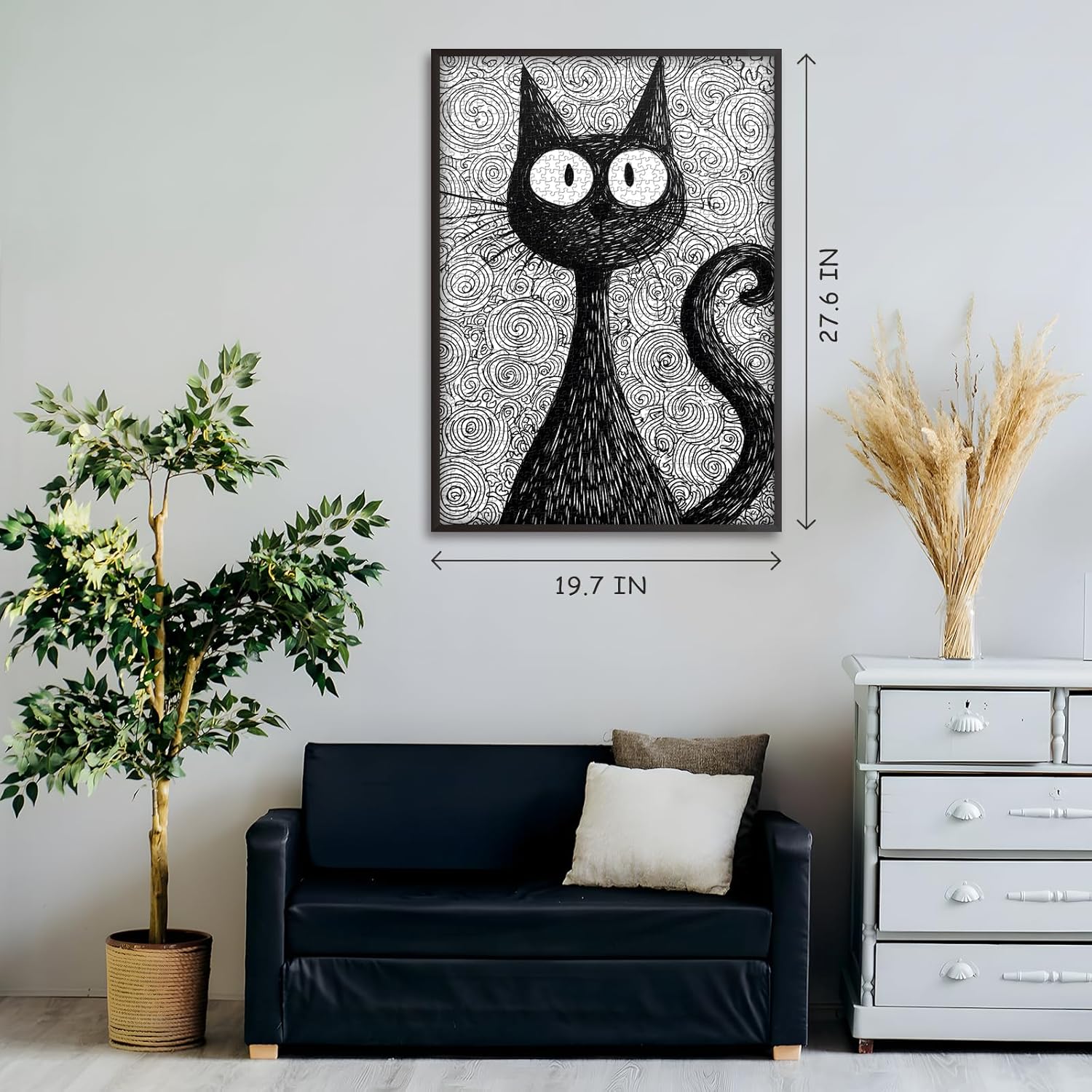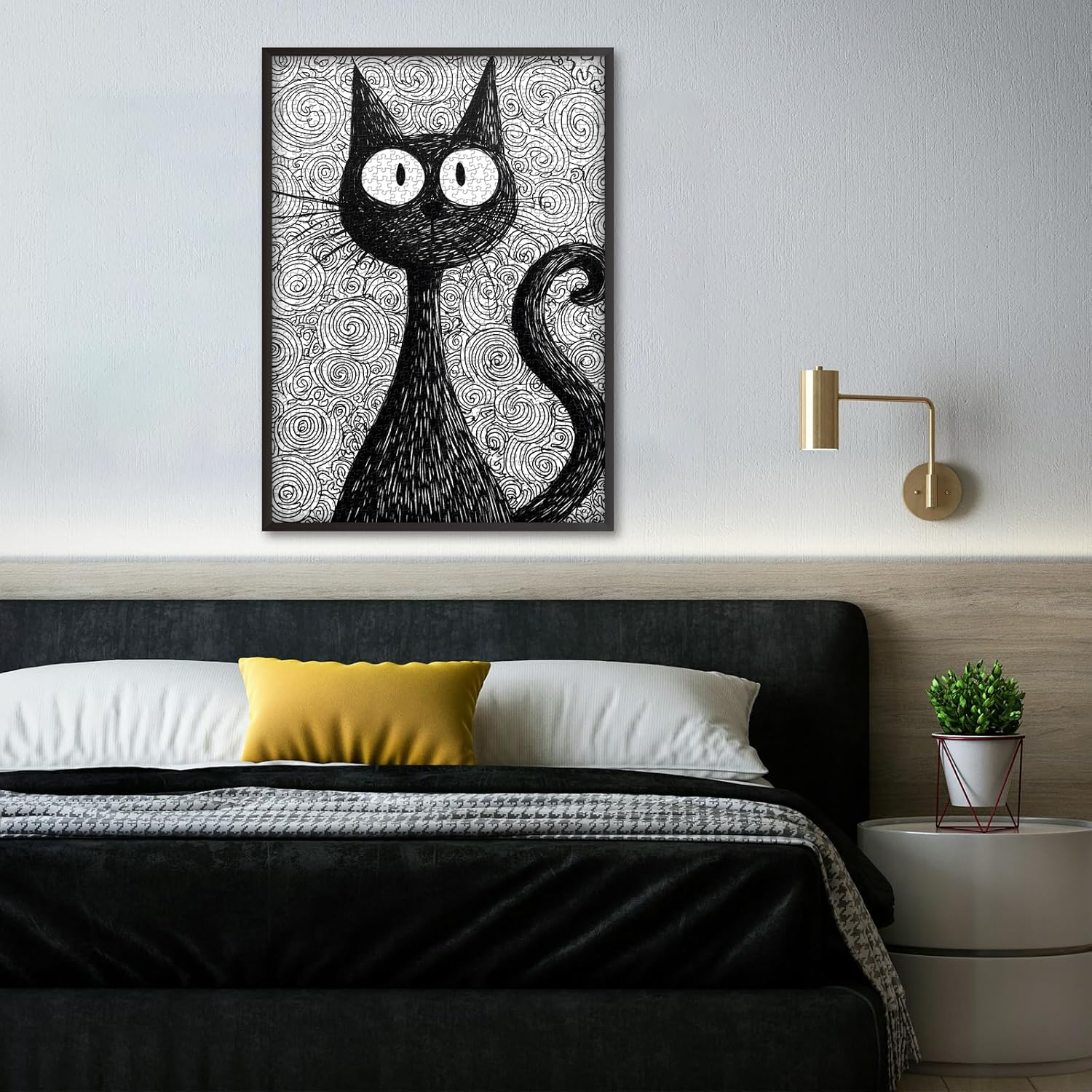 Home wall decoration:Once completed, the Whimsical Cat puzzle can be framed and displayed as modern wall art, adding a whimsical and creative touch to living rooms, studios, or bedrooms