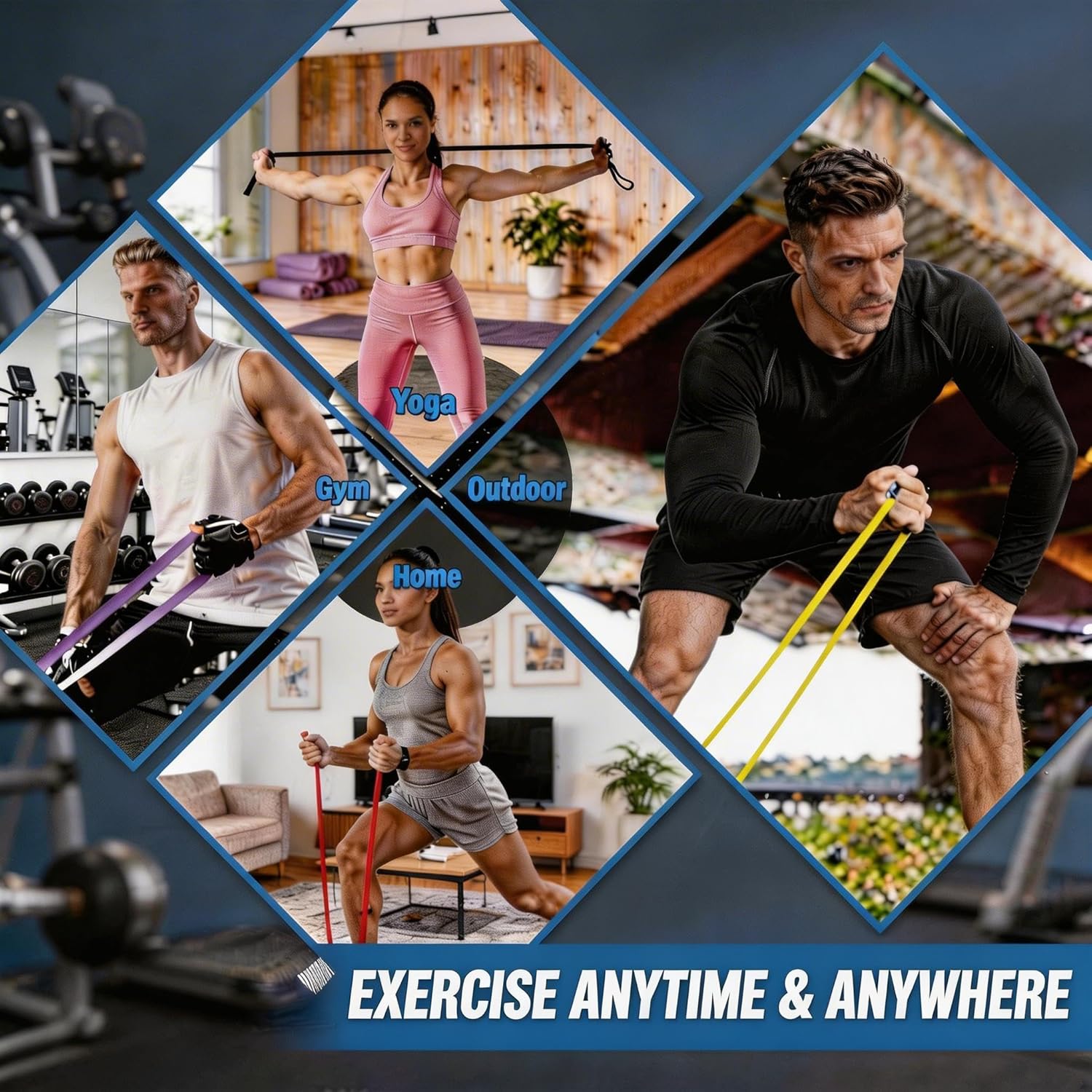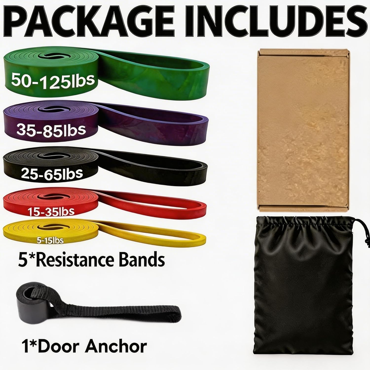 Resistance Bands, 5 Levels Exercise Bands for Men Women, Upgraded Tear Resistant Workout Band with Door Anchor, Pull Up Assistance Band for Working Out,Body Stretching,Physical Therapy,Muscle Training