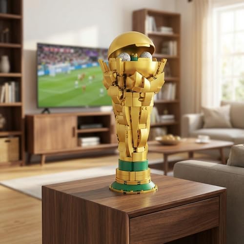 Soccer Trophy Building Set - STEM Golden Footballl Cup Model for Display Iconic Gold Sports Desk, Home Decoration for Soccer Fans