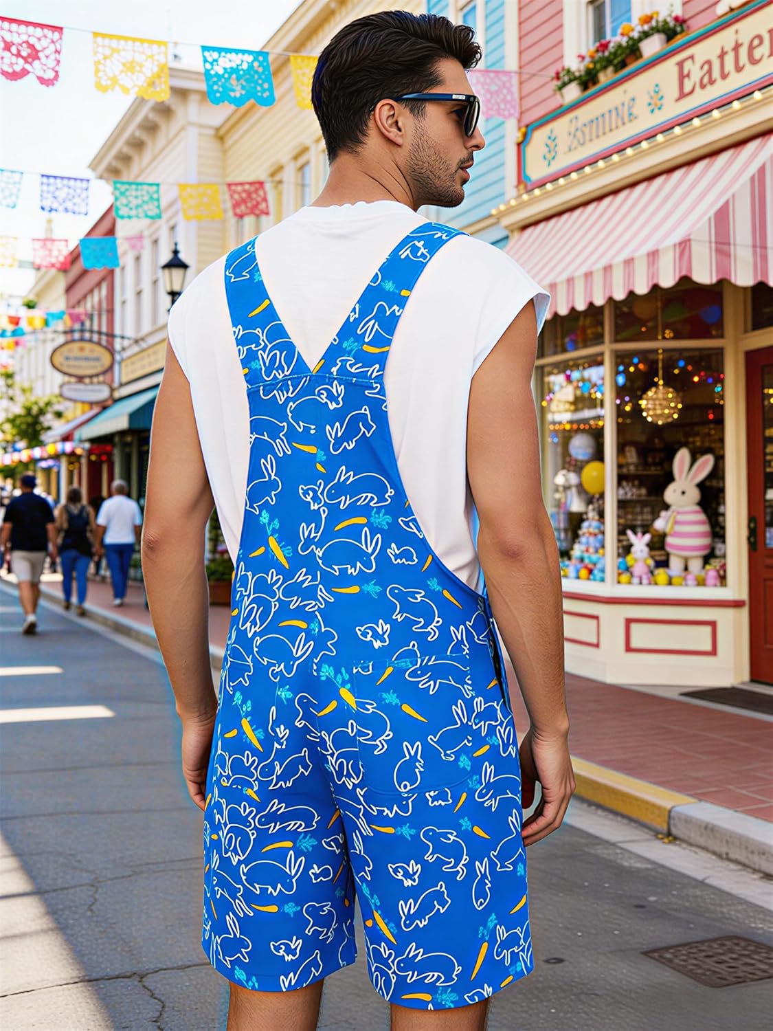 Easter Overall Shorts for Men Occasions: Perfect for themed parties, music festivals, holidays, backyard BBQs, or as a bold casual wear piece. Wear it with a t-shirt underneath or on its own for a daring look that's sure to get compliments.
