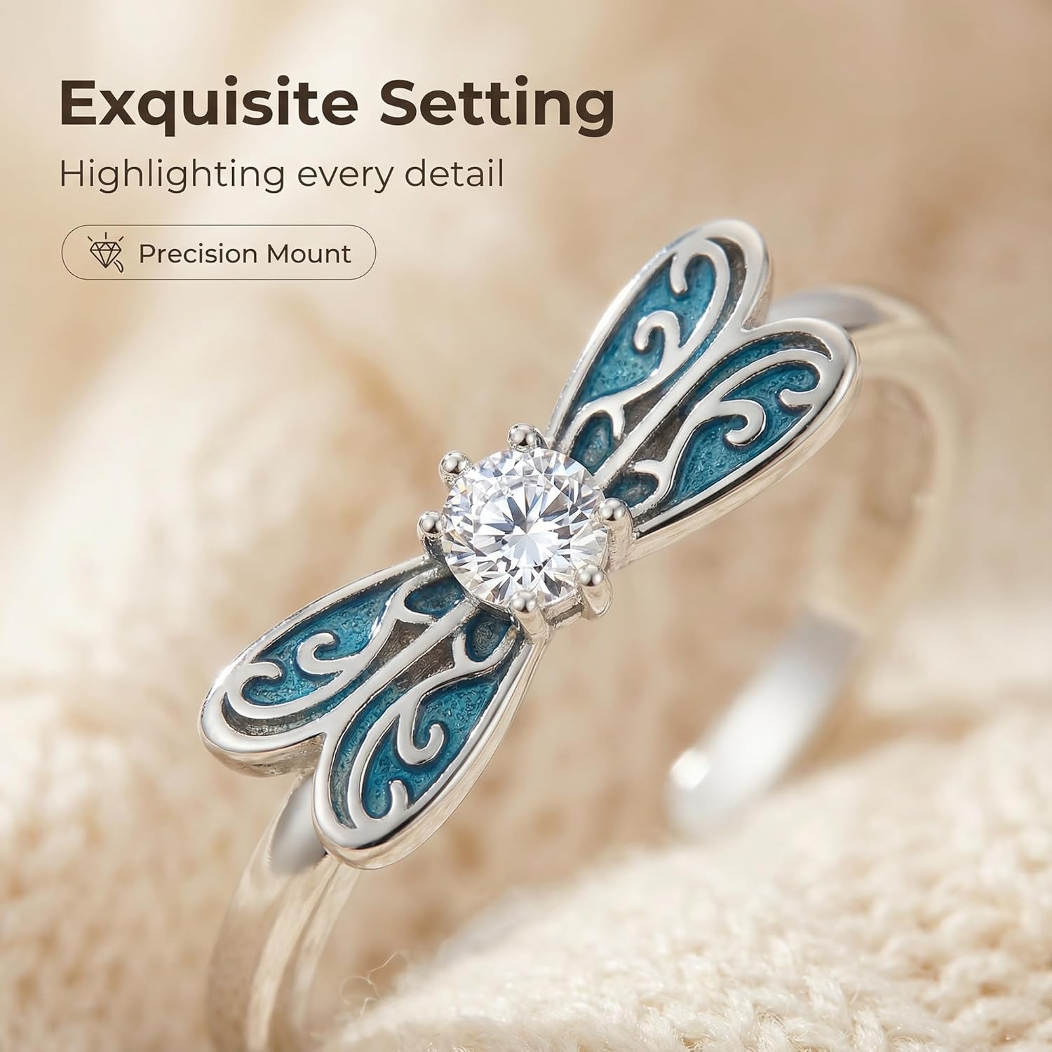 DIMENSIONS: Ring features a 19mm (0.75 inch) width dragonfly design that makes a statement while remaining delicate and feminine, perfect as a gift or personal accessory