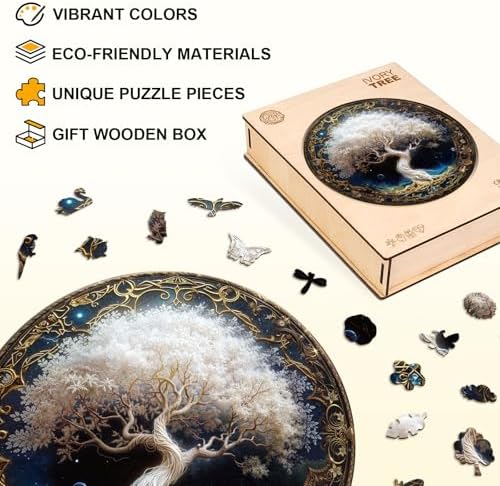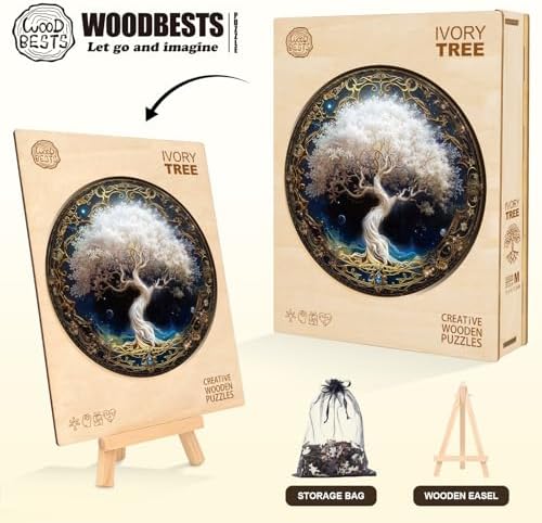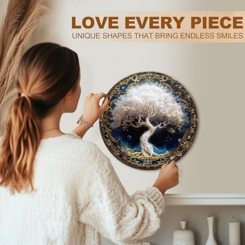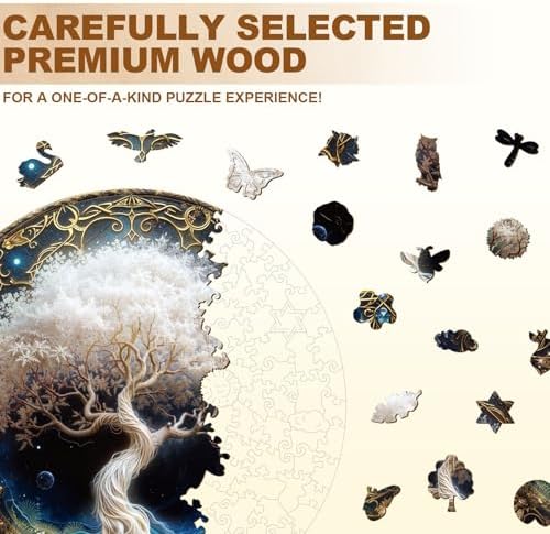 KAAYEE Wooden Puzzles for Adults, Ivory Tree (M-11.4 * 11.4 in-200pcs) Wooden Jigsaw Puzzle, Natural Wood Puzzles for 14+, Leisure Game, Home Wall Decor for Puzzle Lovers, Friends