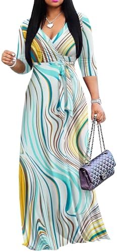 Soft & Stretchy Fabric – Made from a lightweight, breathable and stretchy fabric that feels soft on the skin. Designed to provide all-day comfort while maintaining a flattering drape, making this plus size maxi dress suitable for year-round wear. Flattering Maxi Silhouette : Features a V-neck design and floor-length cut that creates a balanced and elegant look. The flowy shape offers comfortable coverage without feeling restrictive, helping you feel confident and relaxed. Comfortable 3/4 Sleeves : Stylish 3/4 sleeves provide extra arm coverage while keeping the look light and effortless. Ideal for women who prefer a modest yet modern style in a plus size dress. Easy Everyday Styling : This casual plus size maxi dress pairs easily with flats, sandals or low heels for a simple, put-together look. Designed for daily wear, work, casual outings, shopping or relaxed weekends. Attention Items:In order to better protect our clothes,the latest product adopts vacuum packaging,so it may have some wrinkles when you receive the items,but after washing and ironing,it remains flat as before.Please refer to the product size chart below and check product pictures before purchasing.