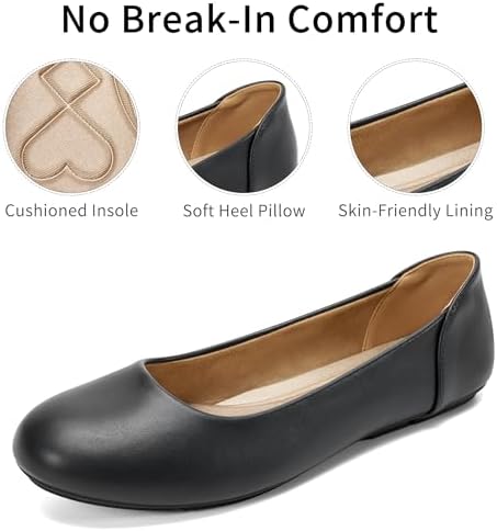 Aomigoct Womens Dress Flats Shoes: Classic Round Toe & PU Leather for Office - No Break-in Heel Pillow & Cushioned Insoles for All-Day Comfort in Business Meetings - Professional Women