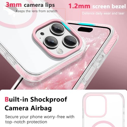 ★[Case for iPhone 15 Pro Max] This VENINGO glossy clear case compatible with 6.7 inch iphone 15 pro max ONLY, NOT fit for any other phone models.please check carefully before purchasing to avoid buying the wrong item. For any question, please tell us via Amazon Message Center → Your Orders → Click the Detail Page of the Product You Purchased → Click "VENINGO " → Ask a Question ★[Ultra-Strong Magnetic Lock] Built with 2800gf magnetic attraction force, which locks securely onto MagSafe chargers, car mounts, and magnetic power banks. Say goodbye to accessories falling off mid-use. The visible pink magnetic ring not only delivers powerful alignment but also adds a stylish accent that coordinates perfectly with the camera frame and inner cushion—so your tech looks as good as it performs. ★[Crystal Clear Back] Crafted from premium German Bayer TPU and PC materials, combined with a nano anti-oxidation layer that resists sweat, UV rays, and daily stains. This clear back case lets the original beauty of your iPhone 15 Pro Max shine through—while staying crystal clear even after months of daily use. Perfect for those who love the naked look but need long-lasting protection. ★[14FT Drop Protection] The iphone 15 pro max case delivers military-grade drop protection up to 14 feet. Extensively tested through 5000+ drop simulations, it absorbs impact when you're commuting, at the gym, or navigating crowded streets. The inner frame features precision-engineered pink TPU shock-absorbing strips that cushion your phone on every corner, giving you the confidence to go hands-free without worry. ★ [Precision Cutouts & Tactile Buttons] Designed for seamless everyday use, this 15 pro max phone case features precisely aligned cutouts that provide easy access to all ports, speakers, and side switches without any obstruction.The integrated soft-button design provides responsive tactile feedback that mimics the feel of your bare phone—no stiff pressing required. ★ [Aesthetic & Cute Design] The pink TPU cushion, matching pink magnetic ring, and raised pink camera bezel create a cohesive look that stands out from generic clear cases. Even the subtle sparkle edges catch light beautifully—adding a touch of glam without being overwhelming. Whether you're using it daily or gifting it to someone special, this case delivers the perfect balance of style and charm.