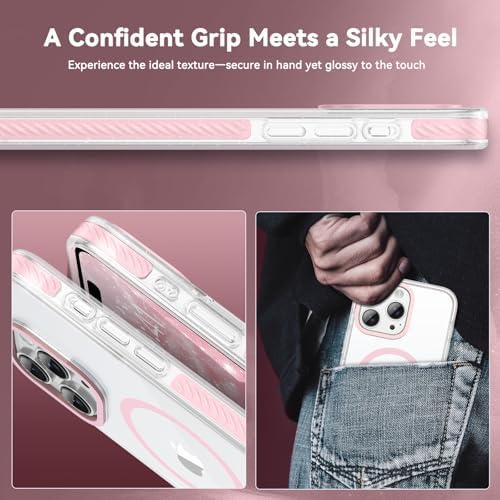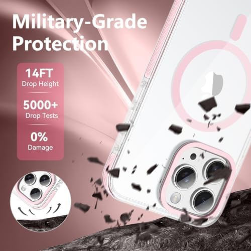 VENINGO for iPhone 15 Pro Max Case Magnetic, Built-in TPU Cushion, Cute Transparent Anti-Yellowing Compatible with Magsafe, Military Drop Proof 14FT, Slim Protective Phone Case, Clear/Pink