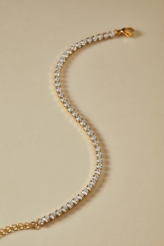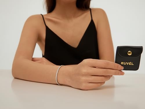 3MM CZ TENNIS BRACELET – Crafted with brilliant AAAAA cubic zirconia stones, this elegant 3mm tennis bracelet delivers timeless sparkle in a refined, feminine design. Lightweight and comfortable for everyday wear, it’s perfect for stacking and layering with your favorite bracelets to create a sophisticated jewelry stack. PREMIUM NON-TARNISH QUALITY – Crafted from durable stainless steel with long-lasting 18K PVD gold plating, this gold tennis bracelet maintains its rich shine without fading or tarnishing. Waterproof, hypoallergenic, and sweat-resistant, it’s designed for everyday wear and safe for sensitive skin. READY-TO-GIFT LUXURY - Elegantly packaged in a signature RUVEL leather pouch with refined gold foil stamping, this 3mm CZ tennis bracelet is ready to impress. A meaningful jewelry gift for your best friend or wife, mom, girlfriend or daughter - perfect for birthdays, anniversaries, Valentine's Day, Mother's Day, and Christmas. A dainty gold tennis bracelet for women designed for everyday elegance and special moments. CUSTOMER COMMITMENT - At RUVEL, quality and customer satisfaction comes first. If you have any question or concerns, our support team is always ready to assist.