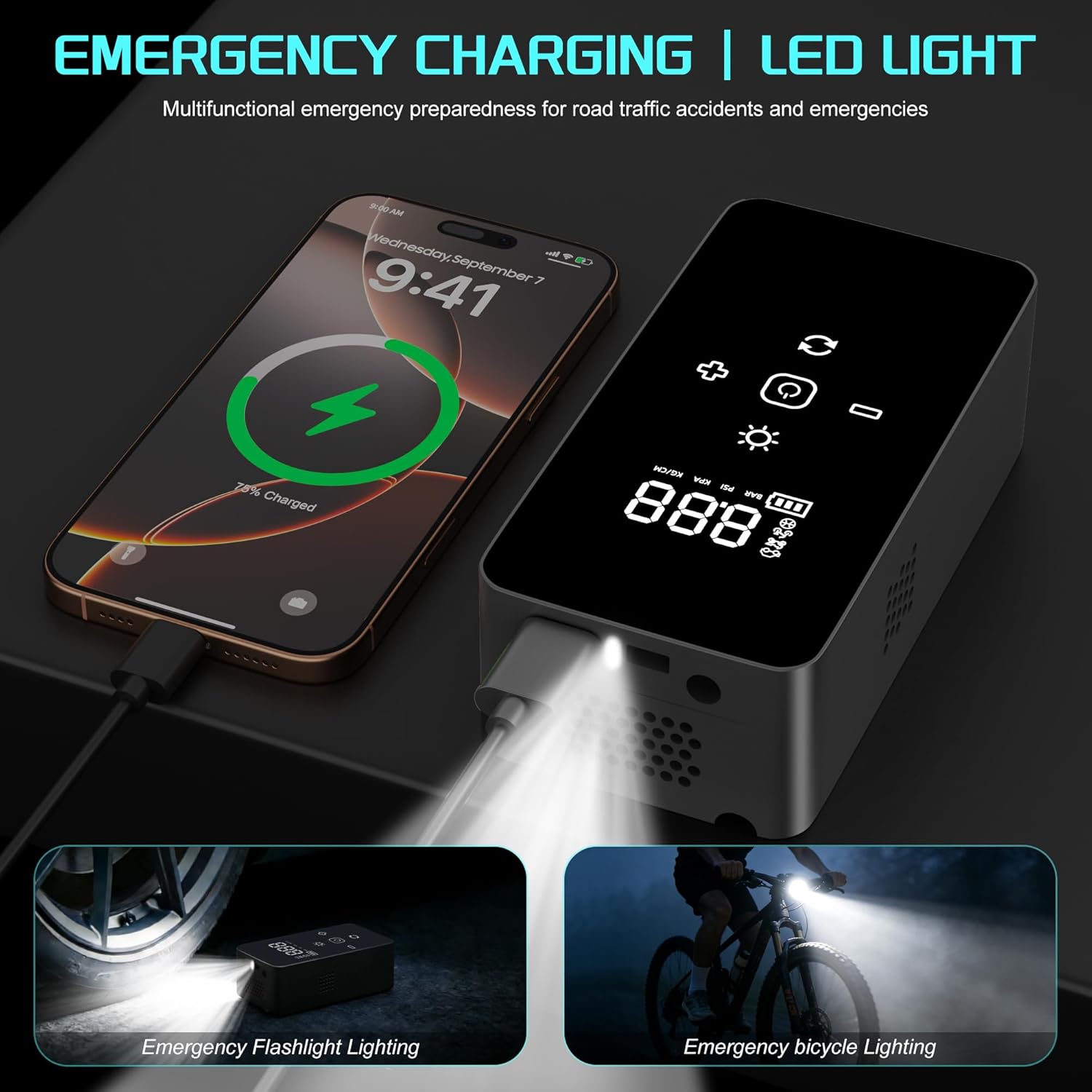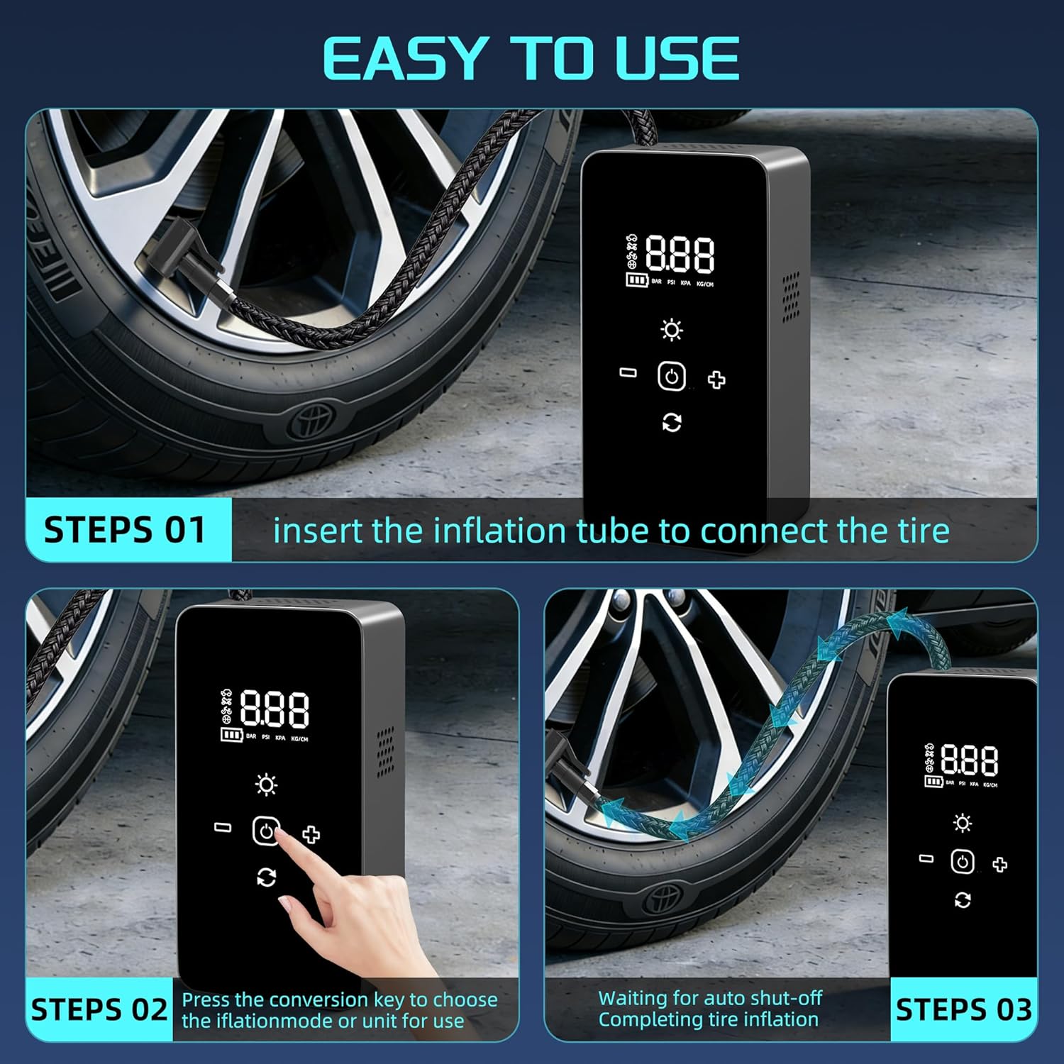 Tire Inflator Portable Air Compressor,Tire Air Pump with Digital Pressure Gauge,LED Lights&Auto Shut-Off Function,Cordless Pump with 12V DC Car Plug,Air Compressor for Car,Motorcycle,Bicycle,Ball