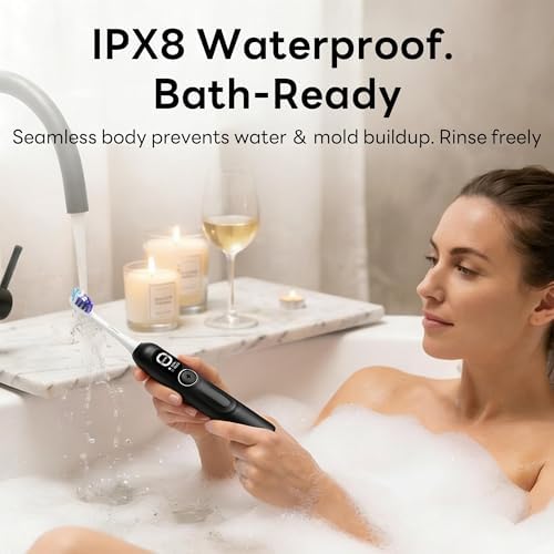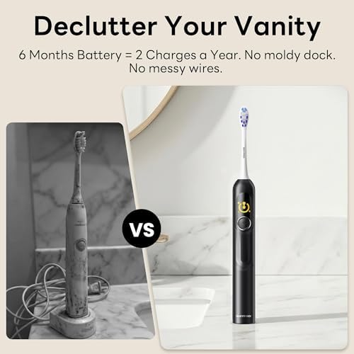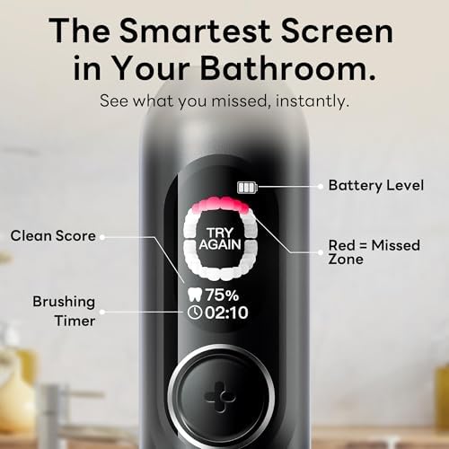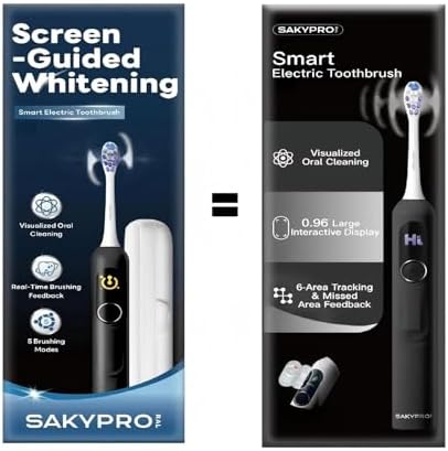 SAKYPRORAL AI Sonic Electric Toothbrush for Adults with Brushing Score & Smart Timer Display, 6-Zone Tracking, Rechargeable Whitening Brush with Soft Heads (Midnight Black)