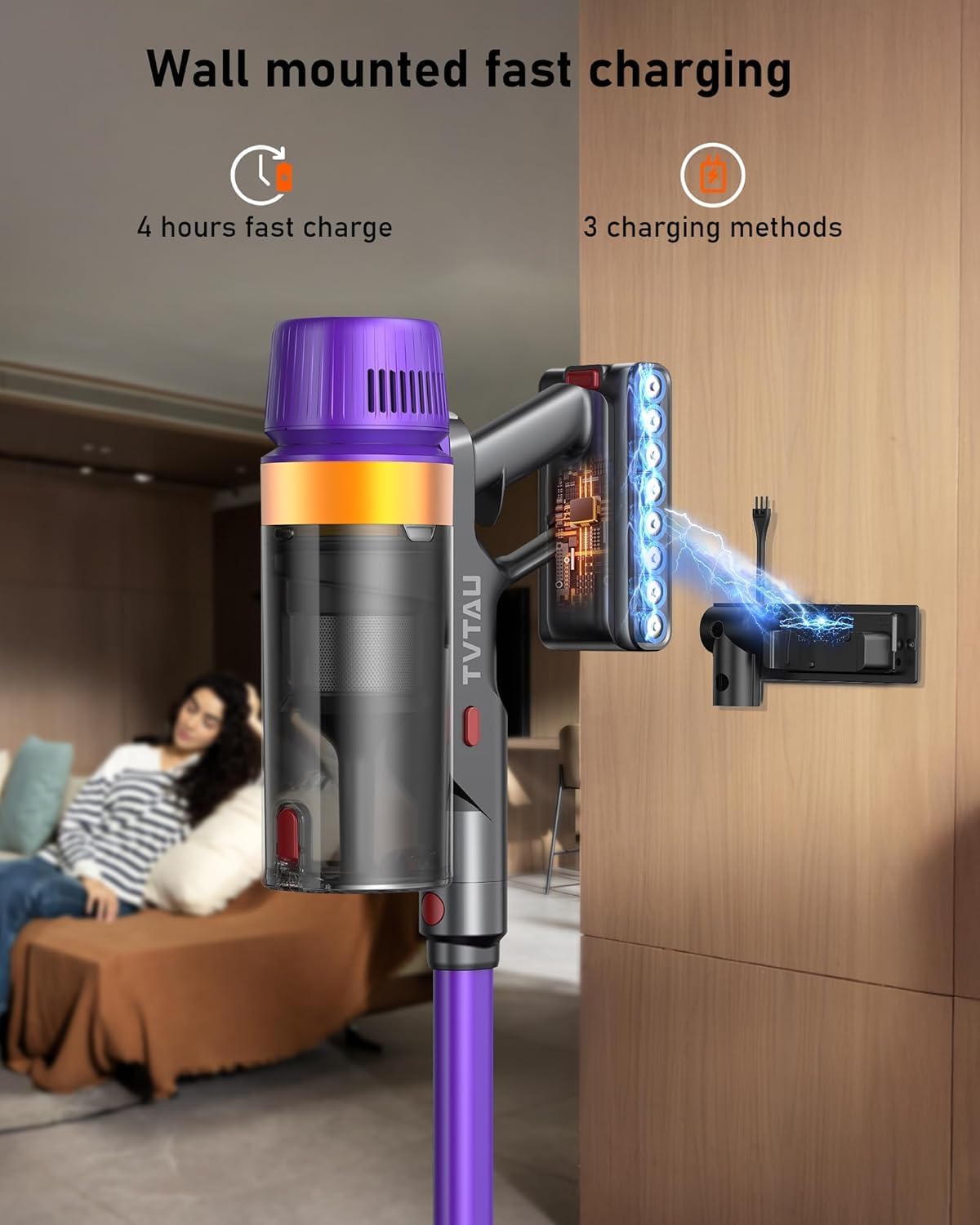 TVTAU Cordless Vacuum Cleaner, Self-Standing 620W 55KPA 75Min Runtime Stick Vacuum for Home, 1.8L Dust Cup, LED Display, Anti-Tangle, 8-Stage Filtration, for Hardwood Floor Carpet Pet Hair