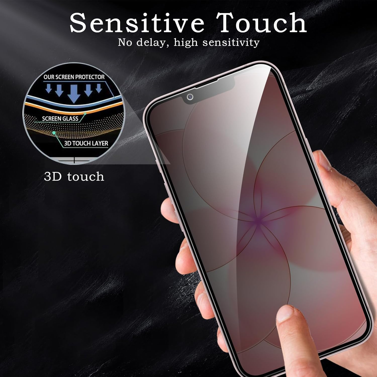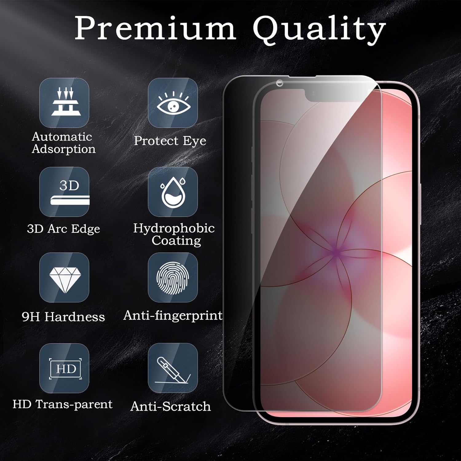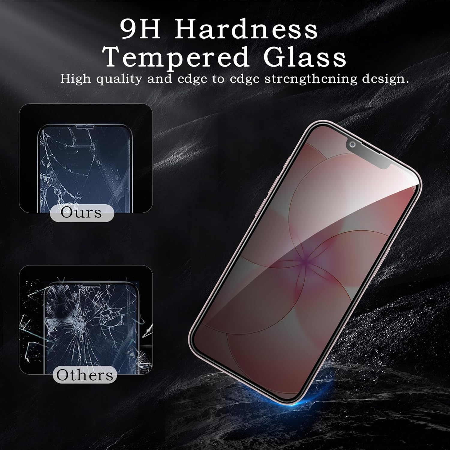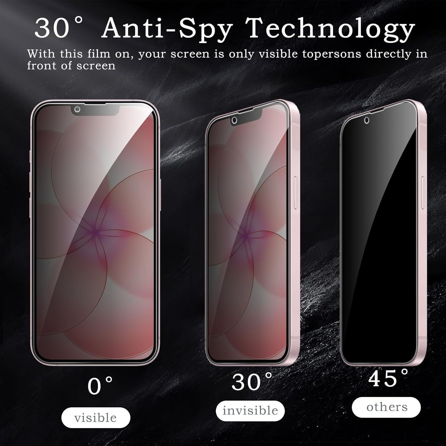 【Shatterproof Scratch Resistant】- With 9H hardness tempered glass, protecting your Phone's screen from daily wear and tears like accidental scratches, small falls, and bumps. This privacy glass screen protector is coated with a Hydrophobic and oleophobic clear layer making it anti-fingerprint and smudges.