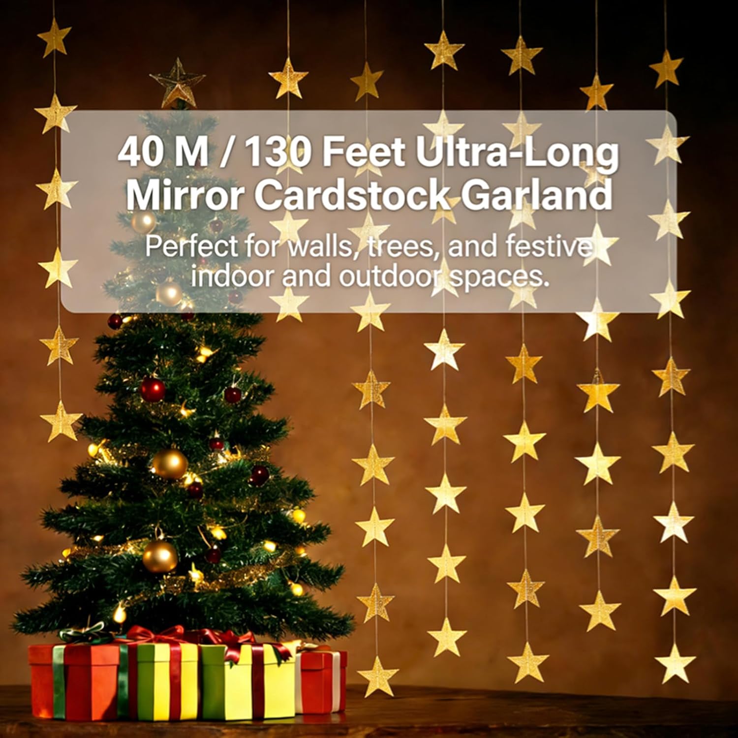 Elevate your celebrations with the QKZONSON 130FT Gold Star Garland—your all-in-one festive decor solution! This premium set includes 10 pre-assembled strands (40m total) with dual 7cm &