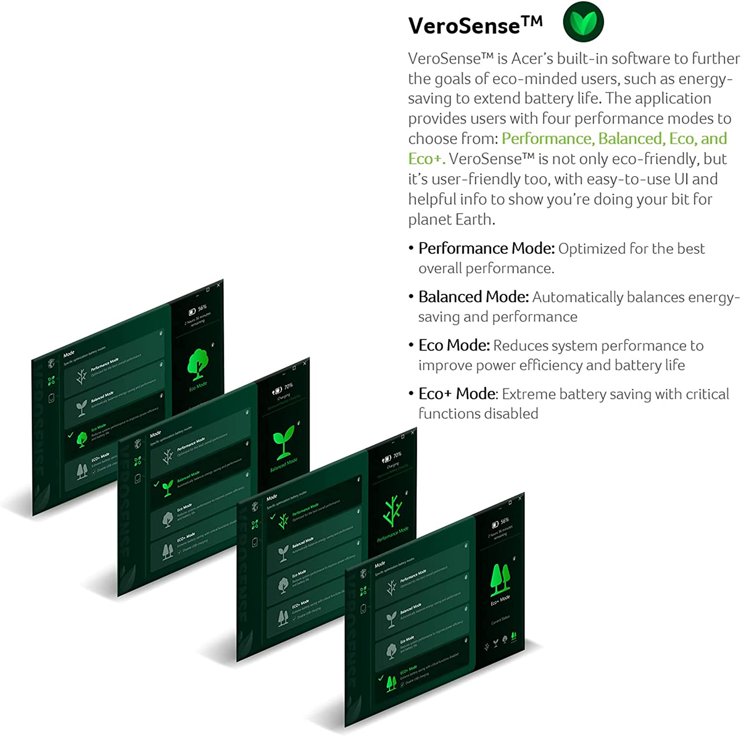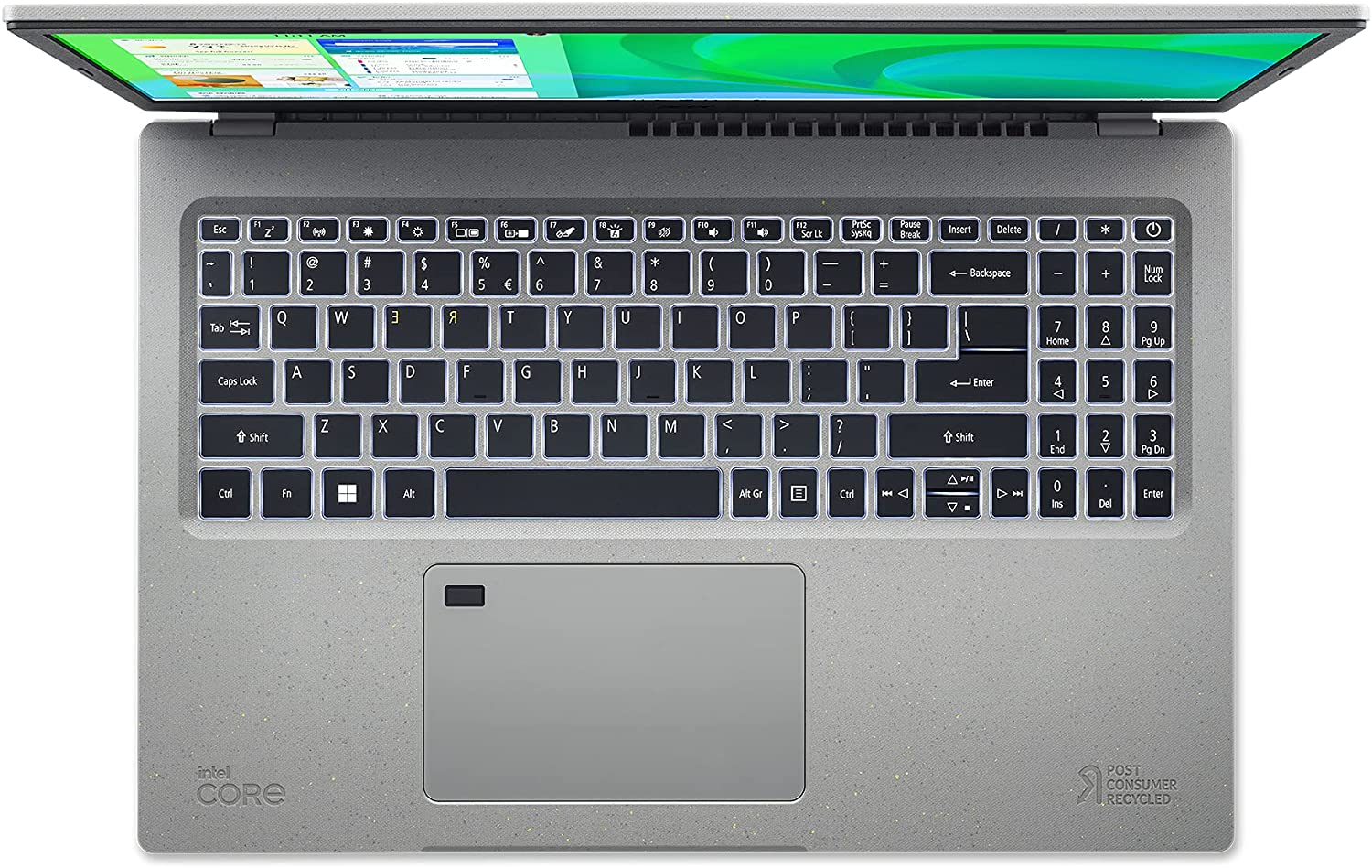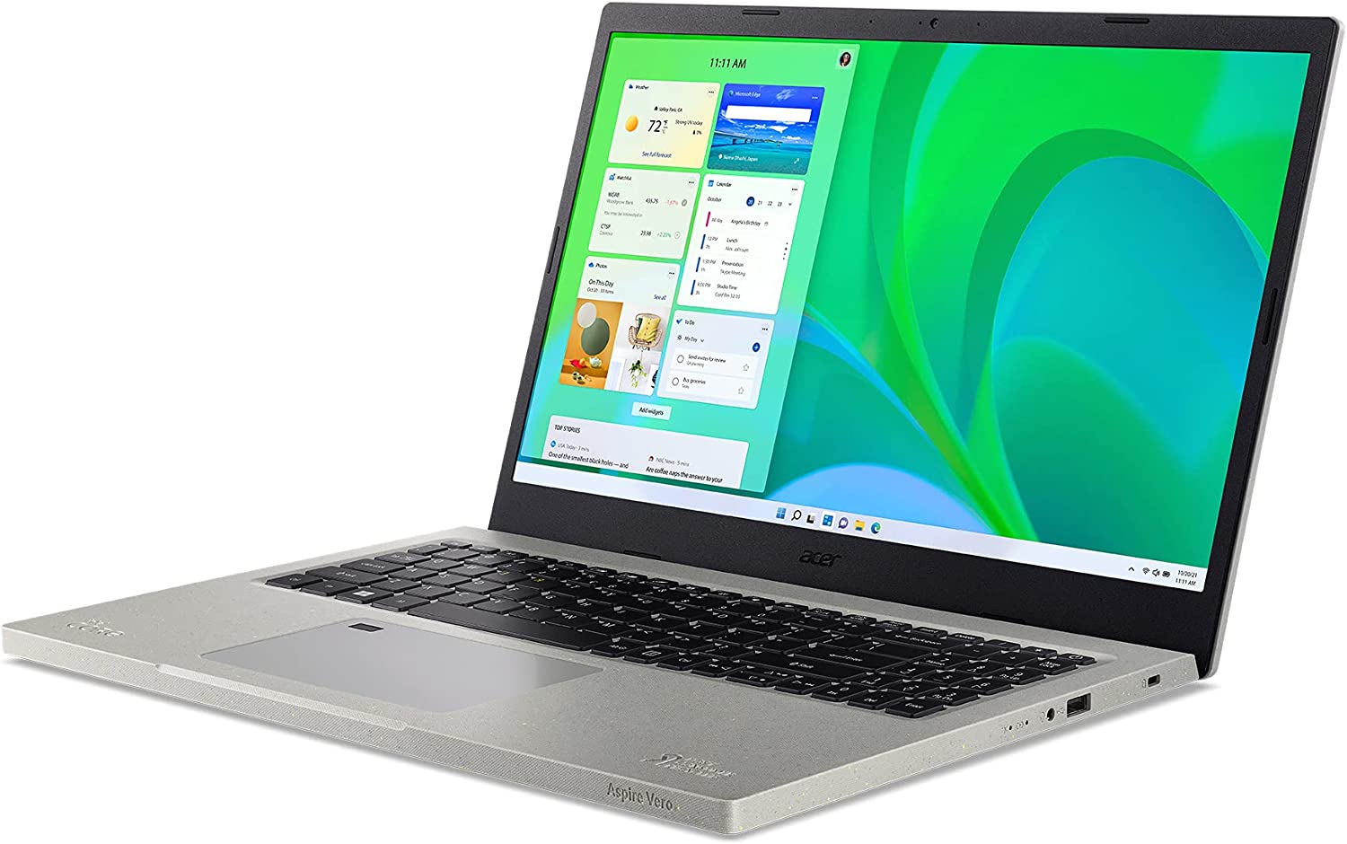 Acer Aspire Vero AV15-51-5155 comes with these high level specs: 11th Generation Intel Core i5-1155G7 Processor 2.5GHz with Turbo Boost Technology up to 4.5GHz (8MB Smart Cache), 15.6" Full HD (1920 x 1080) Widescreen LED-backlit IPS Display (100% sRGB and 300nit Brightness), Intel Iris Xe Graphics, 8GB DDR4 Memory, 256GB NVMe SSD, True Harmony Technology, Two Built-in Stereo Speakers, Acer Purified.Voice Technology with AI Noise Reduction & Two Built-in Microphones, Intel Wireless Wi-Fi 6 AX201 802.11ax Dual-Band 2.4GHz and 5GHz featuring 2x2 MU-MIMO technology, 10/100/1000 Gigabit Ethernet LAN (RJ-45 port), Bluetooth 5.0, Acer Bio-Protection Fingerprint Solution, featuring Computer Protection and Windows Hello Certification, Back-lit Keyboard, HD Webcam (1280 x 720), 1 - USB 3.2 (Type-C) Gen 1 port (up to 5 Gbps), 2 - USB 3.2 Gen 1 Ports (one with Power-off Charging), 1 - USB 2.0 Port, 1 - HDMI Port with HDCP support, Lithium-Ion Battery, Up to 7.5-hours Battery Life, Windows 11 Home, EPEAT Silver Certified, 3.97 lbs. | 1.8 kg (system unit only) (NX.AYCAA.001).