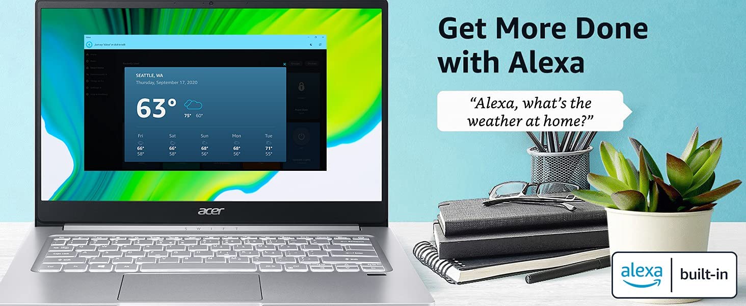 Acer Swift 3 Thin & Light Laptop, 14" Full HD IPS, AMD Ryzen 7 4700U Octa-Core with Radeon Graphics, 8GB LPDDR4, 512GB NVMe SSD, Wi-Fi 6, Backlit KB, Fingerprint Reader, Alexa Built-in