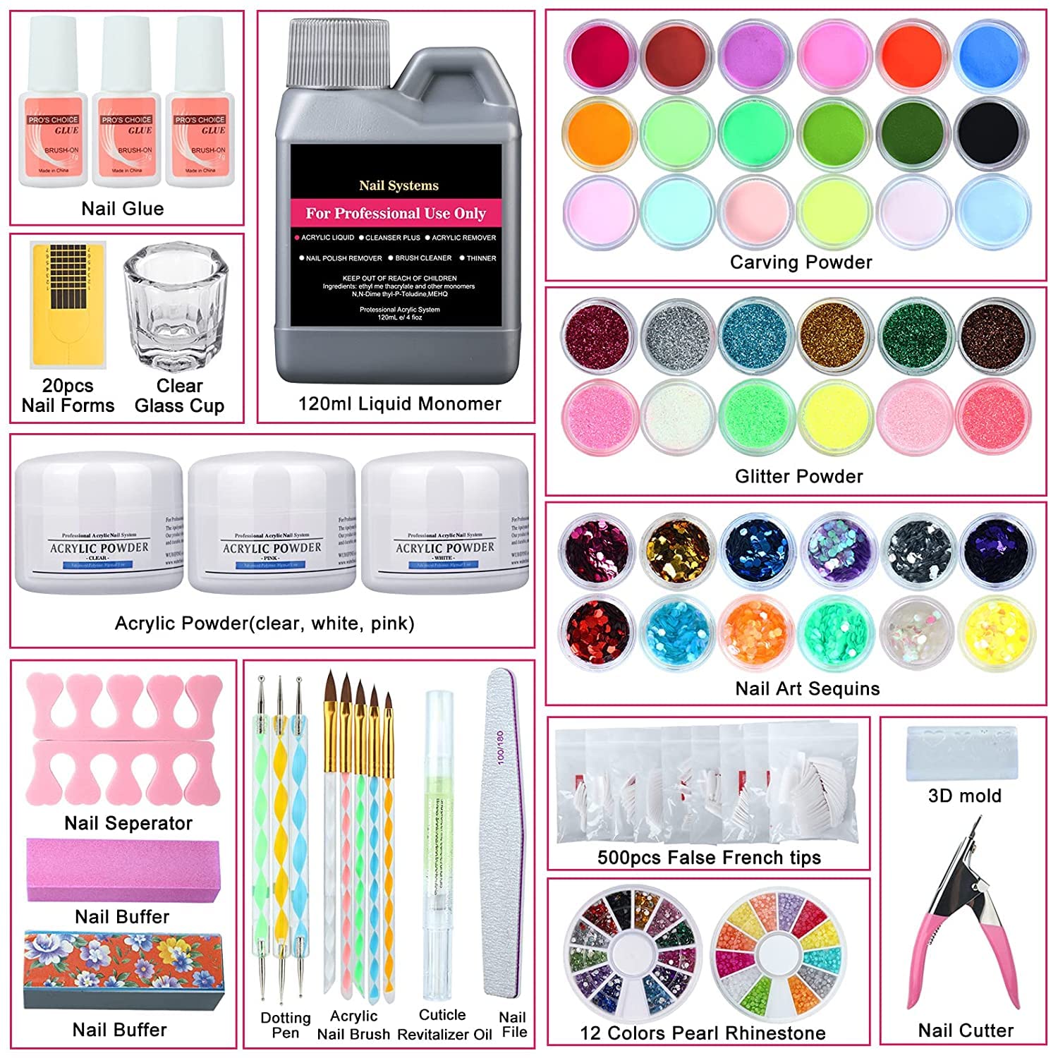 Acrylic Nail Kit Acrylic Powder and Liquid Monomer Set Professional Acrylic Nail Set with Everything