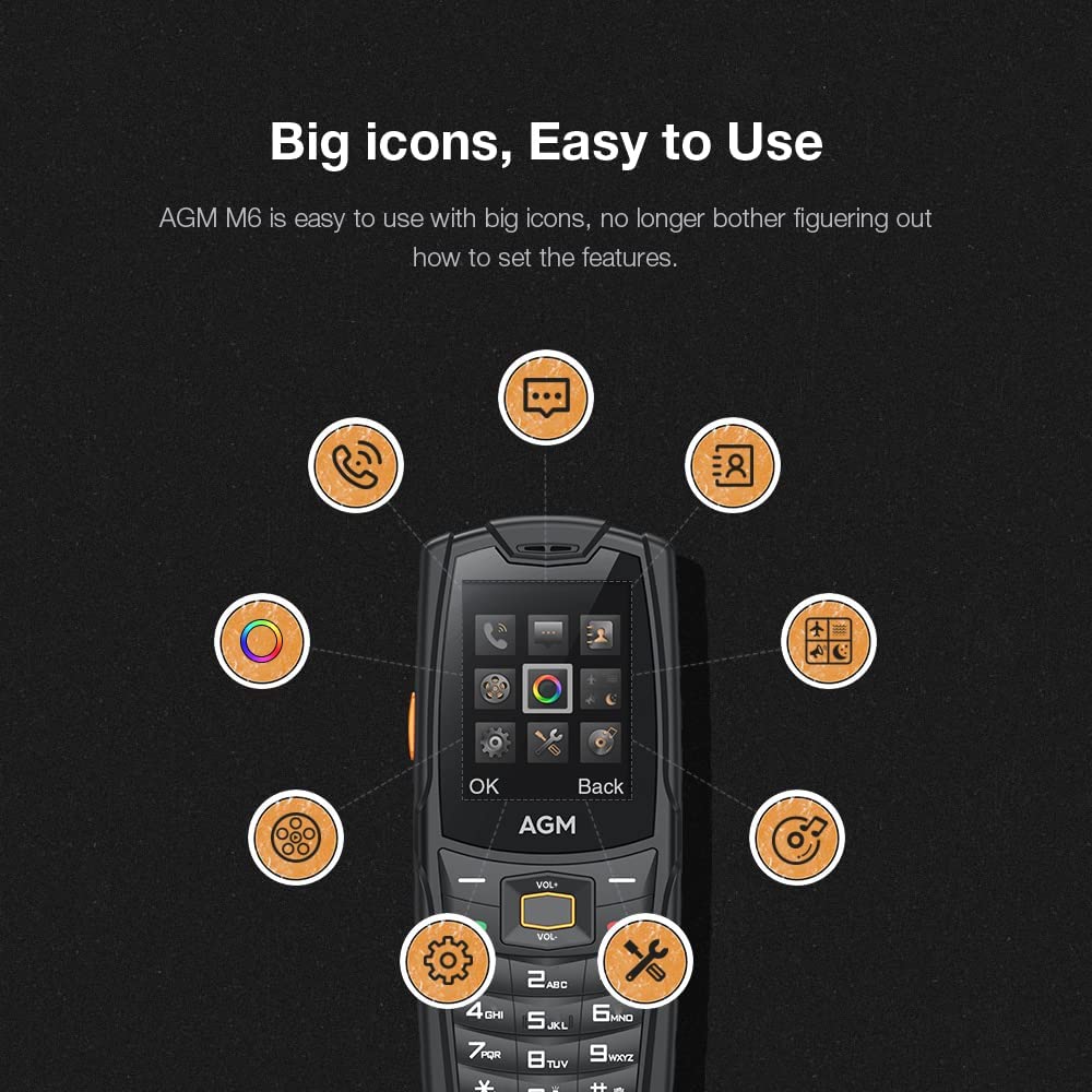 AGM M6 4G Rugged Phone Unlocked Phone Cell Phone for Seniors & Kids, Dual SIM IP68/IP69K Waterproof Phone, MIL-STD-810H, T-Mobile, 2.4" Screen 48MB+128MB 2500mAh Battery Black, Big Font, Big Speaker
