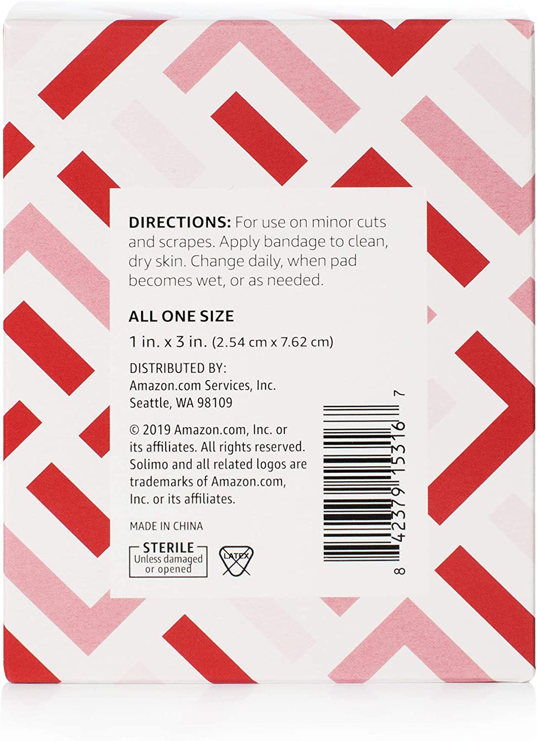 Solimo Flexible Fabric Adhesive Bandages offer first aid and wound protection of minor wounds, cuts, scrapes and burns. These bandages help protect against dirt and germs that may cause infection.