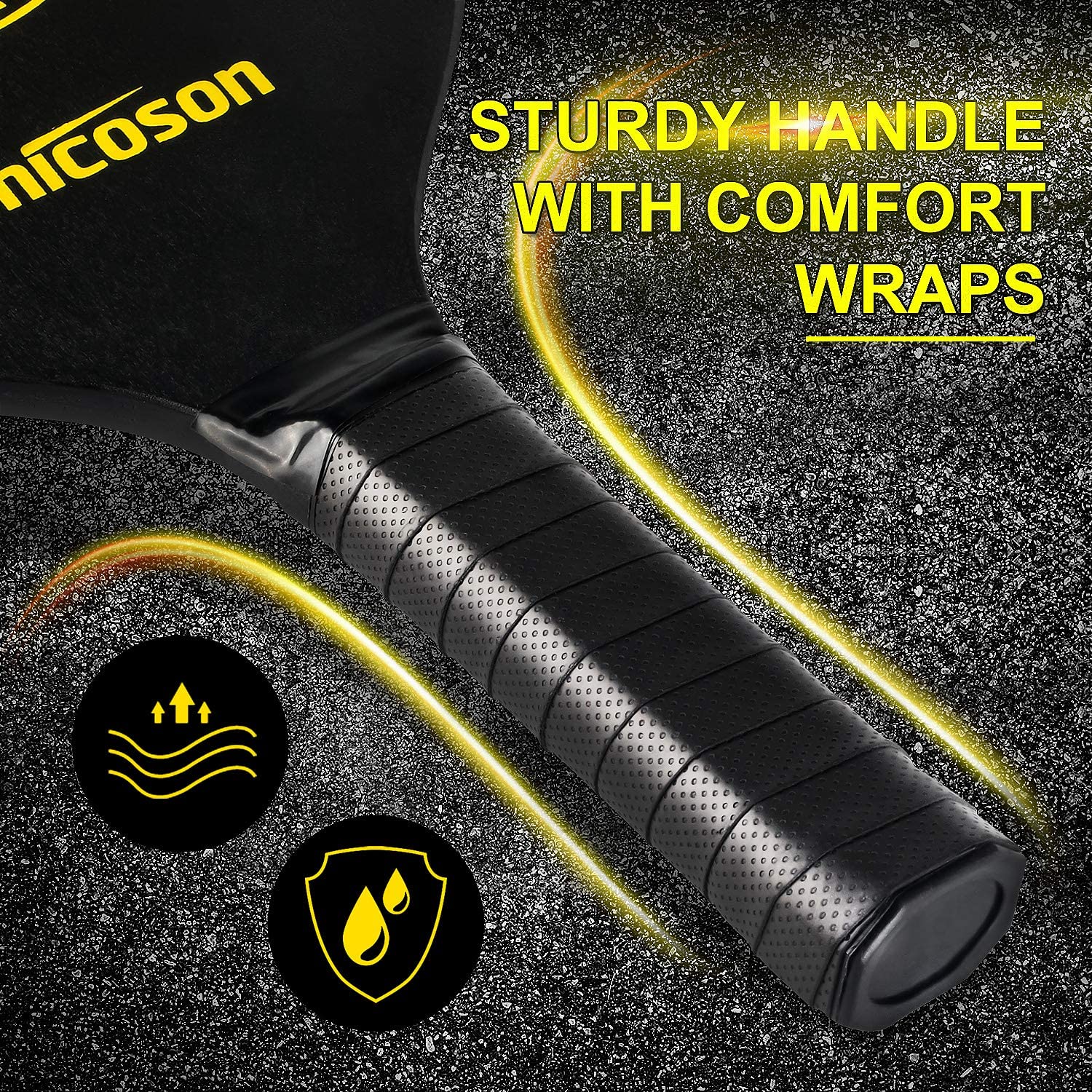 Amicoson Pickleball Paddles - Pickleball Set of 4 Paddles, Indoor & Outdoor Pickleball Balls, Pickleball Paddle Set of 4 Wood Pickleball Racket Ergonomic Cushion Grip, 8 Pickleball Balls & 1 Carry Bag