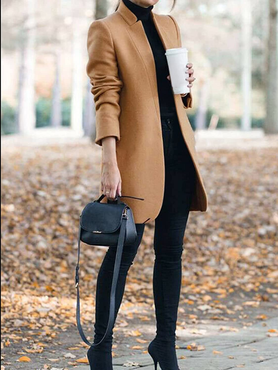 AOVDE Women's Peacoat Trench Coat Mid Long Outwear Casual Lapel Open Front Slim Fit Winter Blazer Cardigan Overcoat
