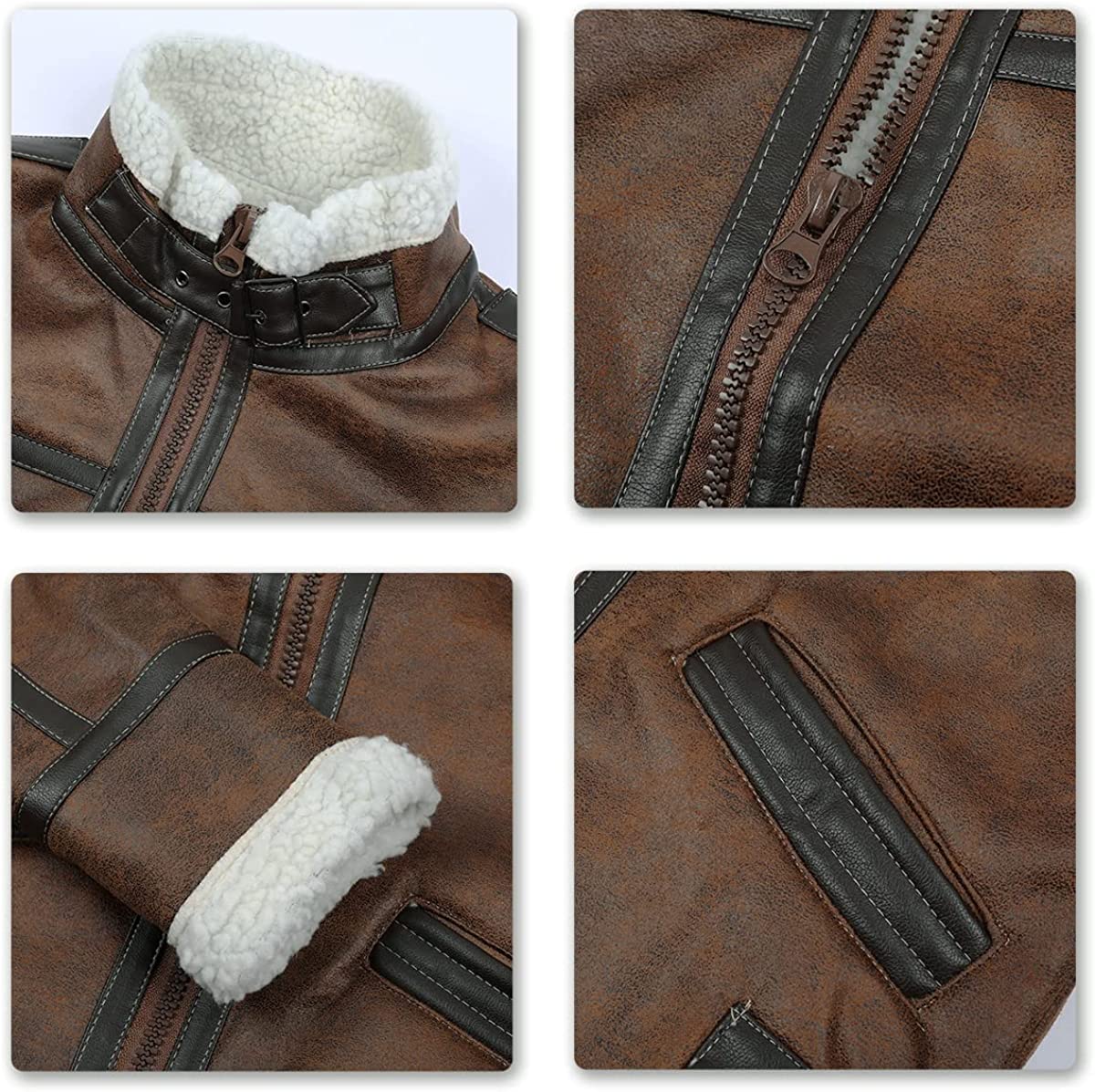 AOWOFS Men's Faux Leather Jacket Brown Motorcycle Bomber Shearling Suede Stand Collar