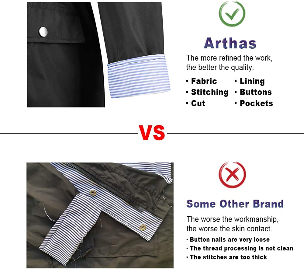 Arthas Women Light Rain Jacket Waterproof Active Outdoor Trench Raincoat with Hood Lightweight Plus Size for Girls