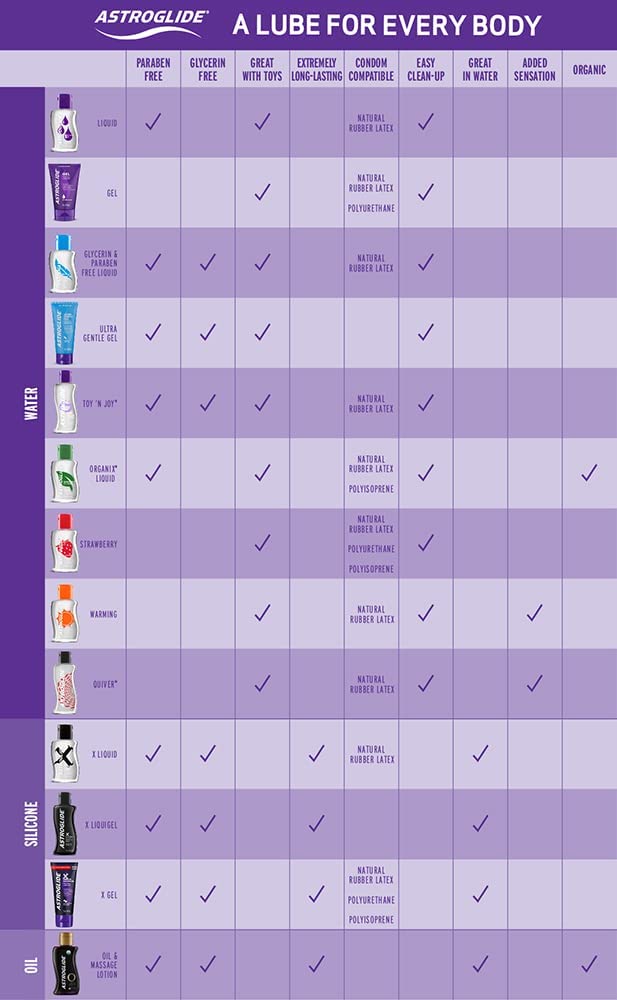 Astroglide X LiquiGel is a revolutionary formula that combines the lightweight, ultra-slick feel of our liquid silicone with the cushion, comfort and control of our silicone gel. Thoughtfully designed to enhance all kinds of play, Astroglide X LiquiGel is highly versatile and perfect for long-lasting romance and steamy shower vibes. Use with a partner or alone. Silicone lubricants are also great for people with sensitivities.